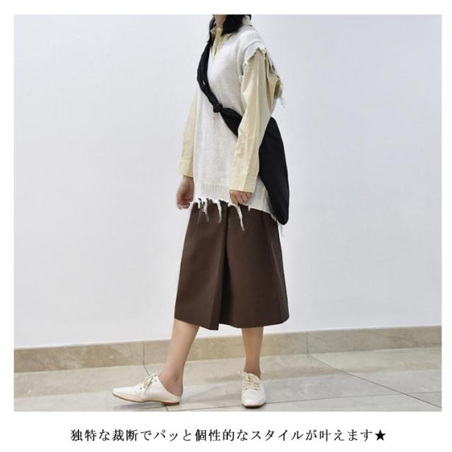 | 不規則な裾が目をひく、個性的なミディアム丈スカート ナチュラルな広がりで美シルエットをメイク 広めの裾なので動きやすく、お出かけや旅行に大活躍 何とでも合わせやすい無地タイプ 便利なサイドポケットが付いています | |