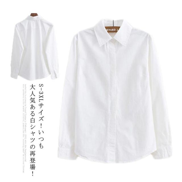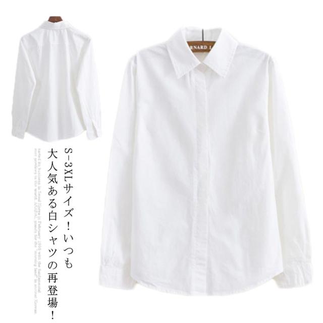 S-3XLサイズ!白シャツ レディース シャツ ブラウス 長袖シャツ レギュラー襟シャツ 無地シャツ コットンシャツ シンプル 可愛い 裏起毛 暖かい 春 秋 冬
