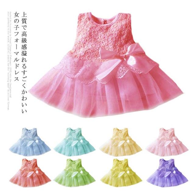 チュールワンピース ワンピース ノースリーブ ドレス 花嫁ガール チュールドレス フォーマル フェアリードレス チュール 花柄 レース付き 大リボン ふんわり 可愛い 女の子 女児 ガールズ 重ね着 インナーワンピース お洒落