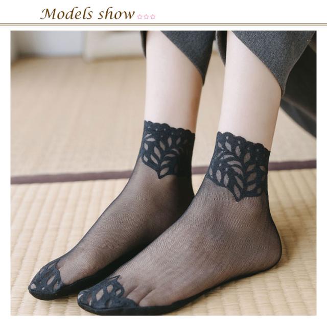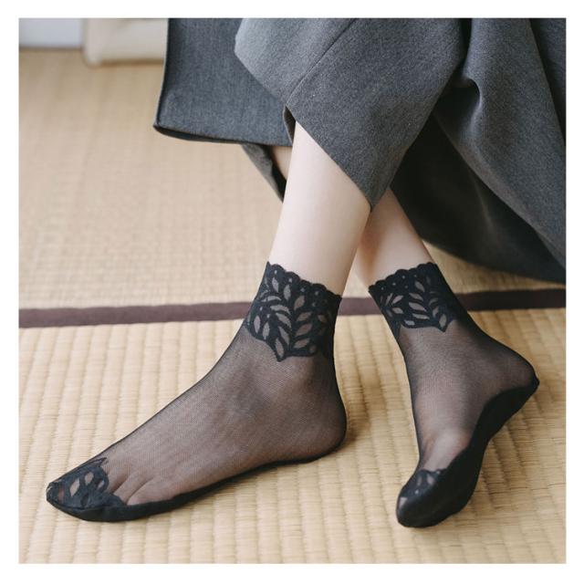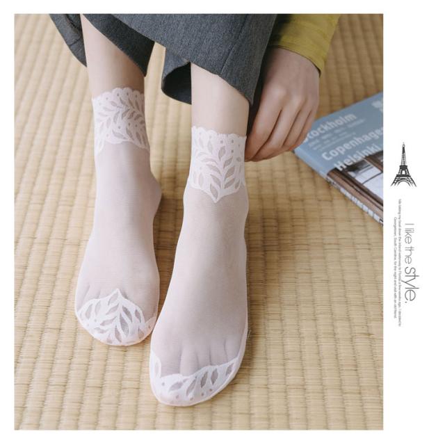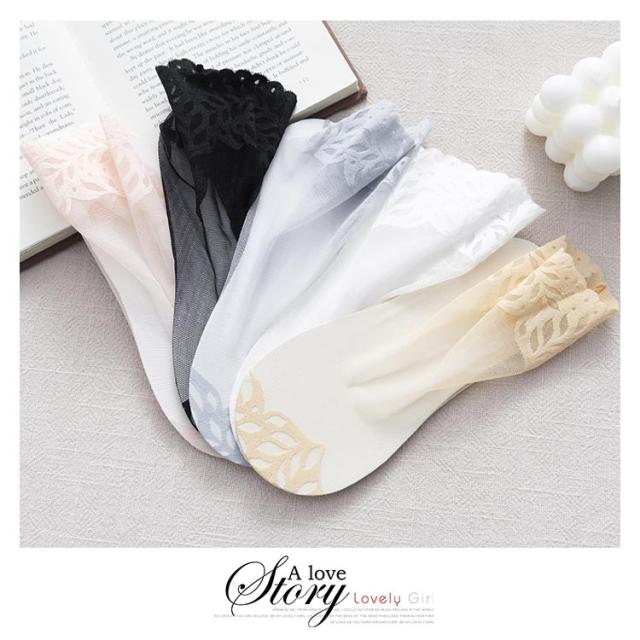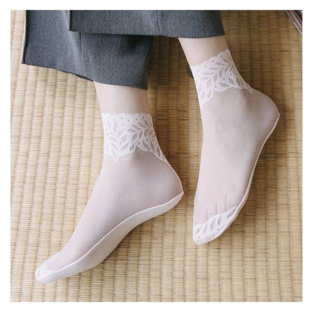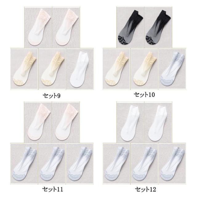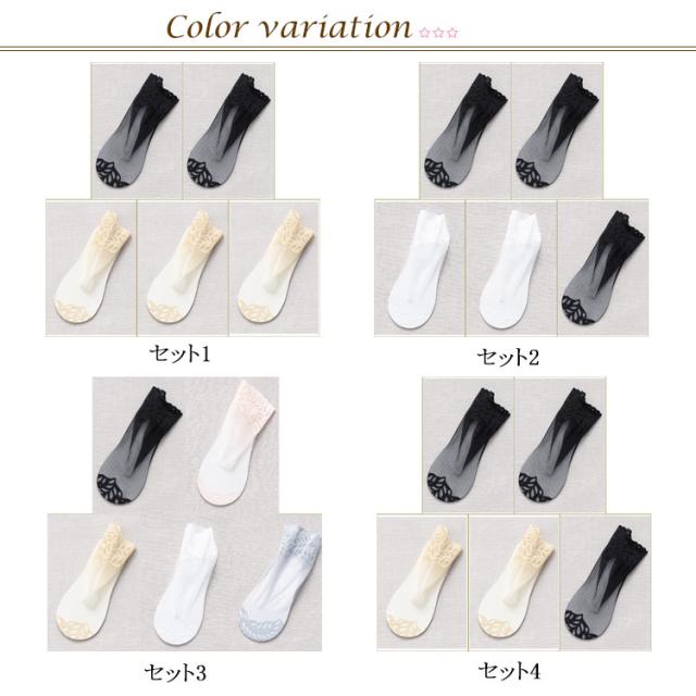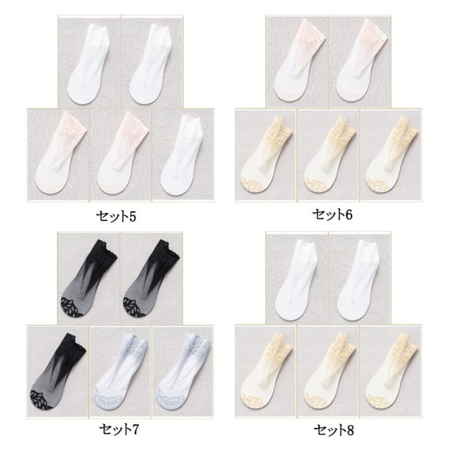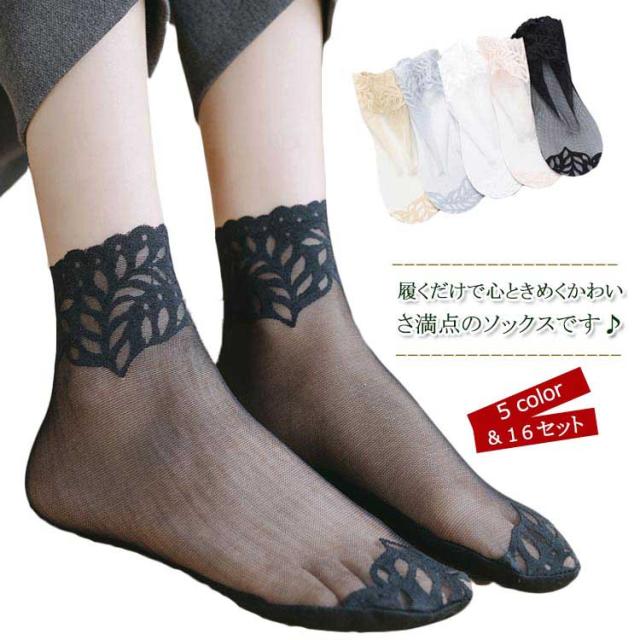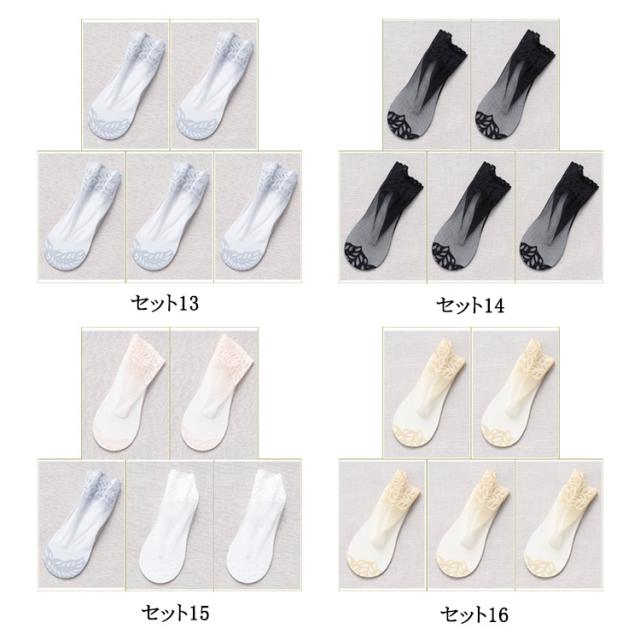 ソックス レディース 靴下 5足セット レース 花柄 フラワー シースルー 透け感 可愛い 薄手 おしゃれ パンプス ミドル 春夏用 防臭 送料無料