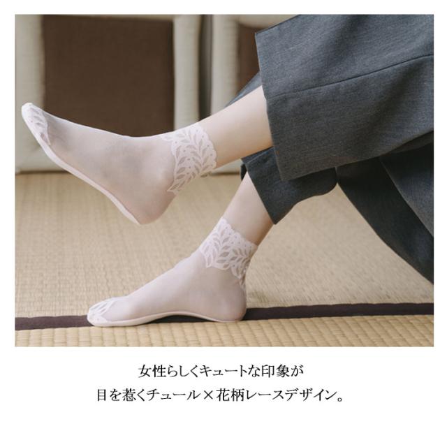 | 履くだけで心ときめくかわいさ満点のソックスです♪ 女性らしくキュートな印象が目を惹くチュール×花柄レースデザイン。 フェミニンオーラを纏う総レースで仕上げたソックスはおしゃれ感抜群☆ ふわっとエアリーな透け感が程よい甘さをプラスしてくれます。 いつものパンプスやスニーカーに合わせるだけで可愛さとおしゃれ度がUP! | |