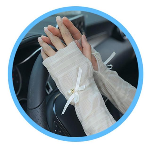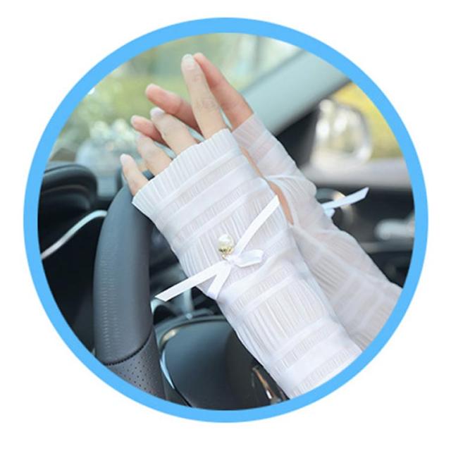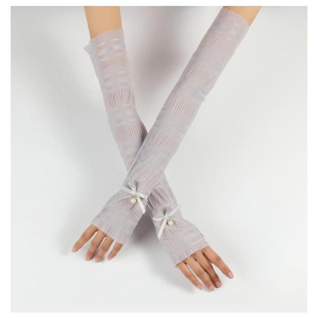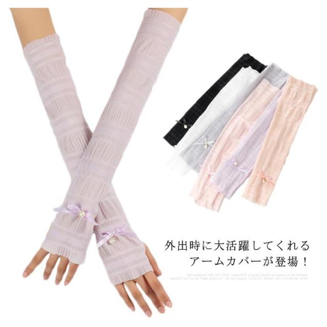アームカバー 腕カバー レディース UVカット パール付き 夏物 指穴タイプ UV手袋 夏物 接触冷感 日焼け対策 紫外線対策 ランニング 運転 アウトドア