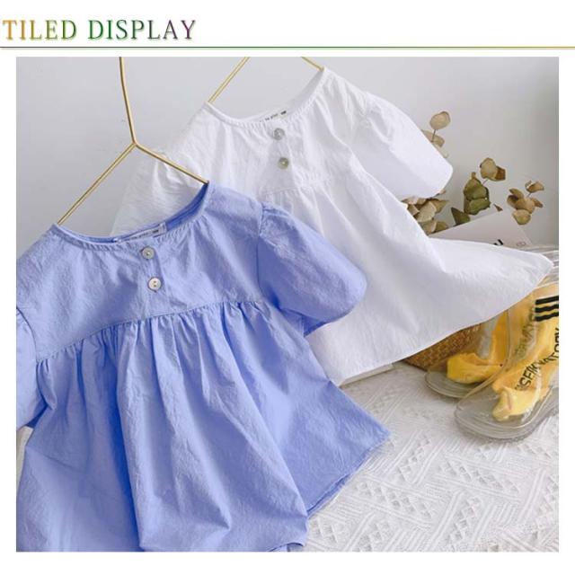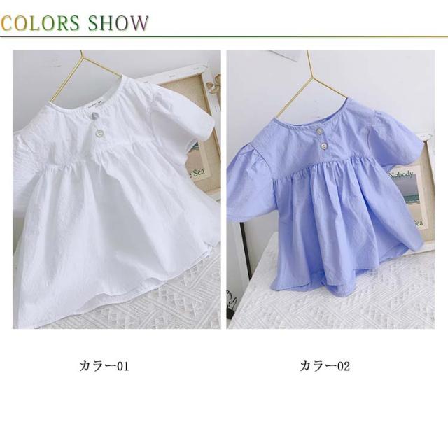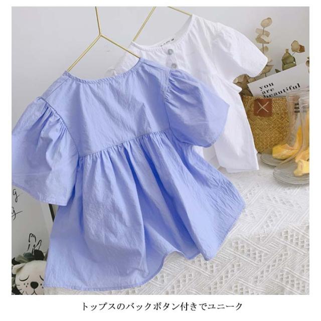 ブラウス 子供服 ブラウス シャツ フリルTシャツ フレアスリーブ 半袖 フレア シンプルシャツ 無地ブラウス ゆったり ふんわり感 可愛い 女の子 ガールズ プルオーバー トップス 夏新作
