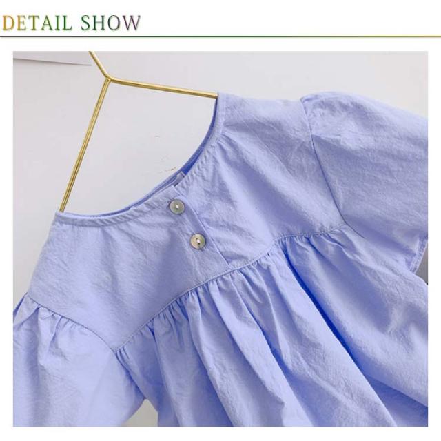 | インパクト満点な子供ブラウスをご紹介します トップスのバックボタン付きでユニーク フレア裾で可愛さアップします フリル袖口設計は女の子らしい | |