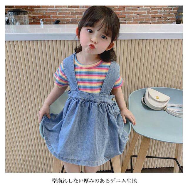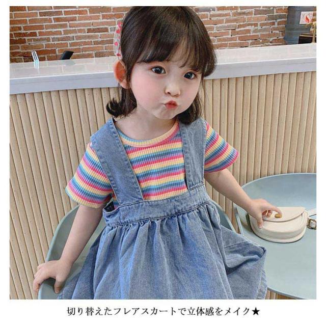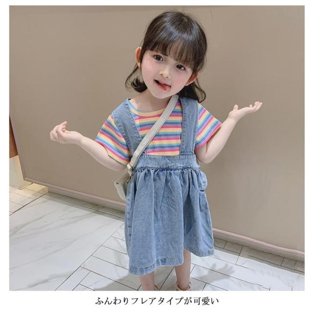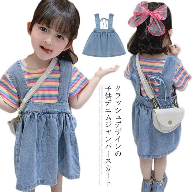 ジャンパースカート 子供服 レディース 女の子 デニムワンピース ノースリーブ オールインワン フレアワンピース ミモレワンピース 太ストラップ リボン付き ふんわり お洒落 キュート 可愛い オールシーズン 夏新作