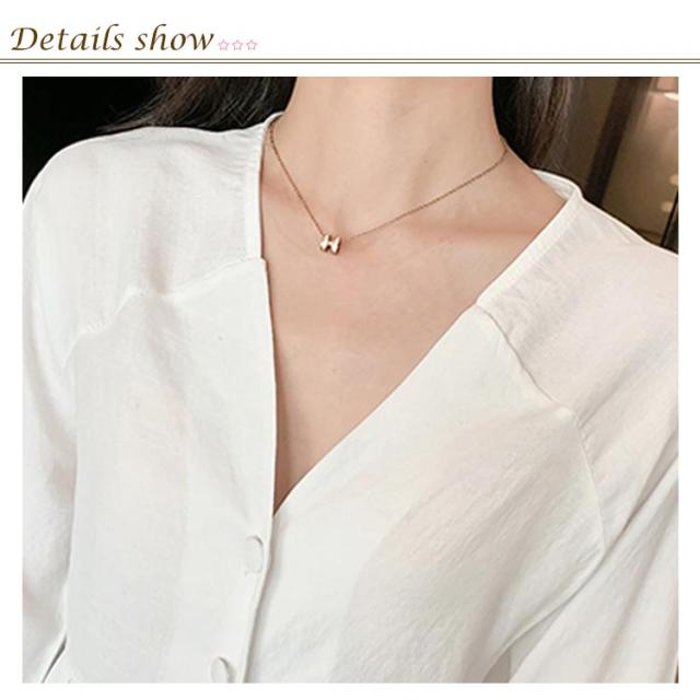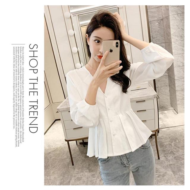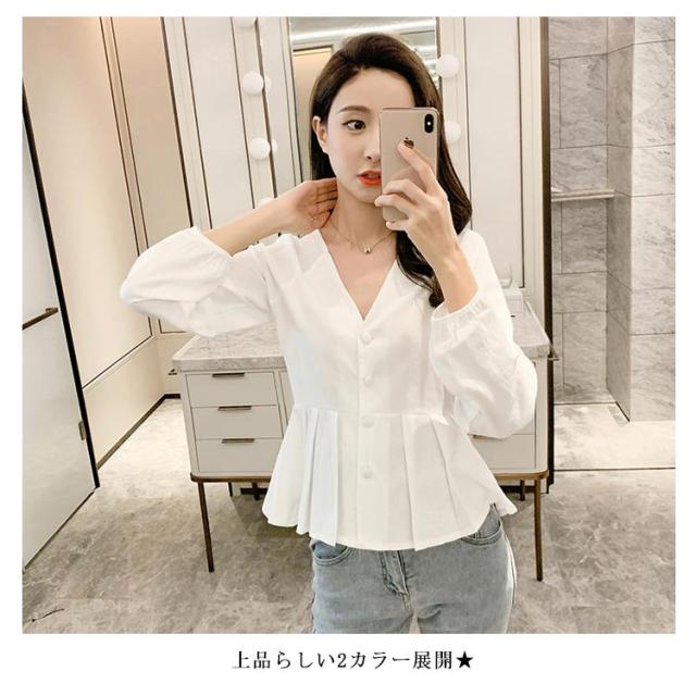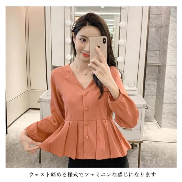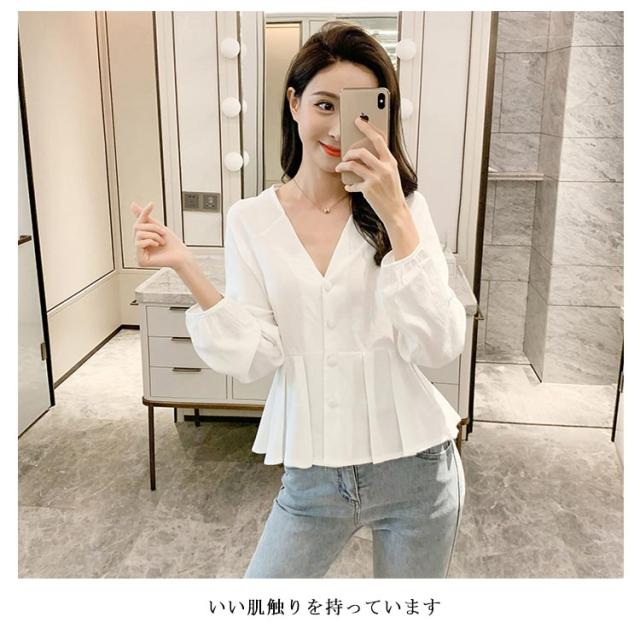 | ナチュラルでもお洒落な長袖ブラウス ウェスト締める様式でフェミニンな感じになります やや広めのVネック様式で鎖骨を綺麗に見せます ボタン飾りでお洒落度アップ いい肌触りを持っています | |