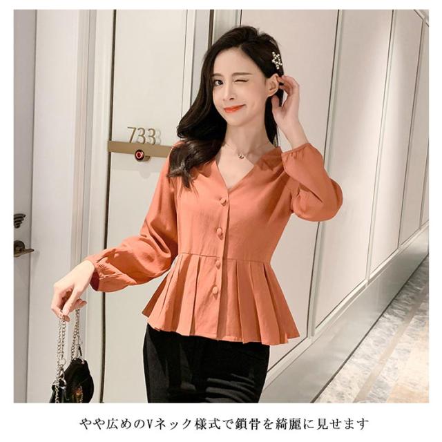 長袖ブラウス レディース リネンブラウス 綿混 ブラウス Vネック 綿麻 麻生地 リネン混 フレアブラス ウェスト締める 鎖骨見せ 大人 エレガント ナチュラル 上品 普段着 お洒落 キレイめ トップス 夏新作