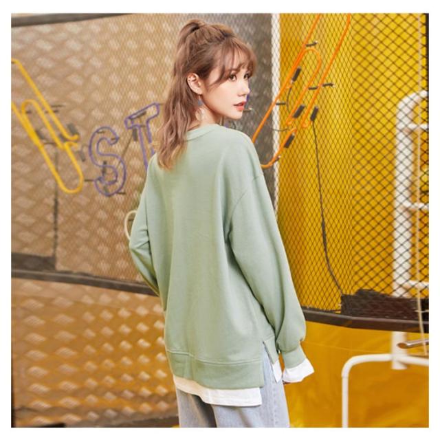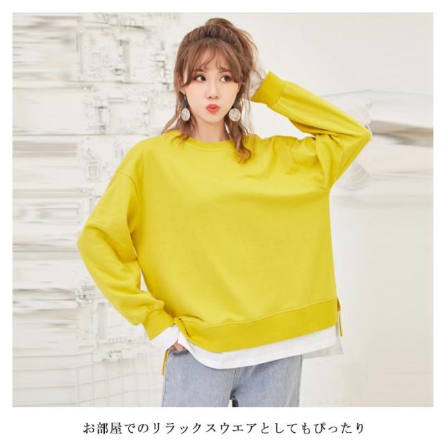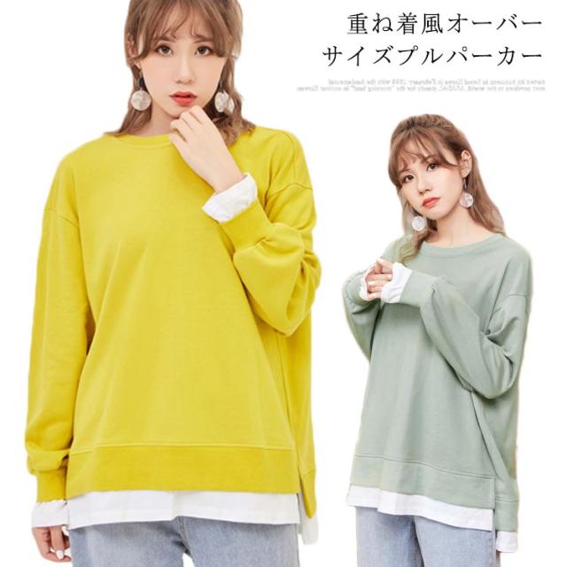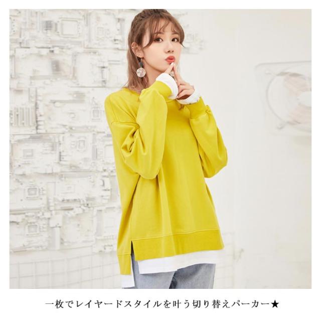 パーカー レディース プルパーカー 長袖 切り替えパーカー ラウンドネック オーバーサイズ フェイクレイヤード お洒落 カジュアル ルーズ 体型カバー トップス プルオーバー 春新作