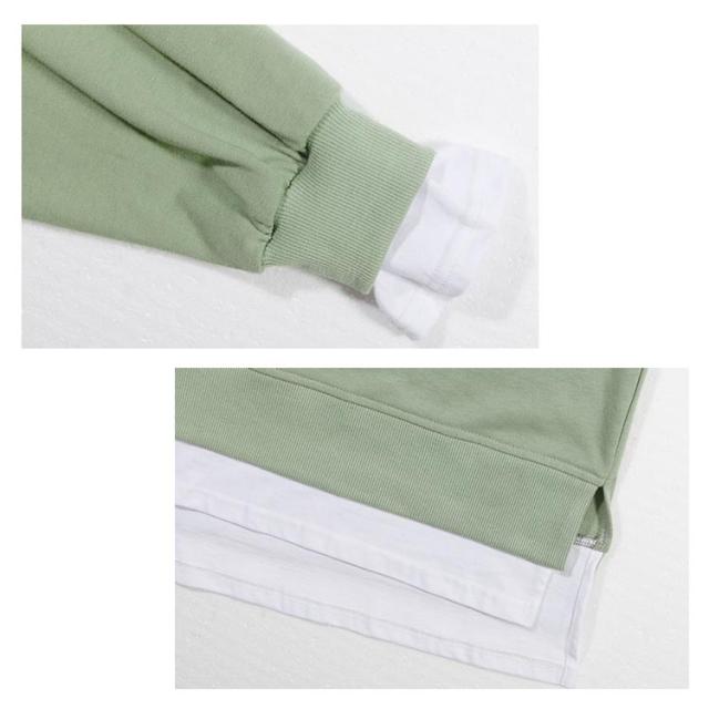 | 重ね着風オーバーサイズプルパーカー 触り心地よく、柔らかな生地を使用しております ドロップショルダーでルーズ感が溢れる お部屋でのリラックスウエアとしてもぴったり | |