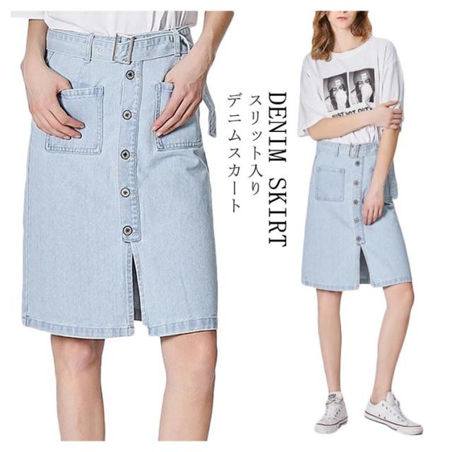 デニムスカート 膝丈 Aライン レディース ボタン デニムスカート ロング Aライン スカート タイトスカート デニムスカート デニム 台形スカート デニム スカート ロングスカート ボトムス ナチュラル