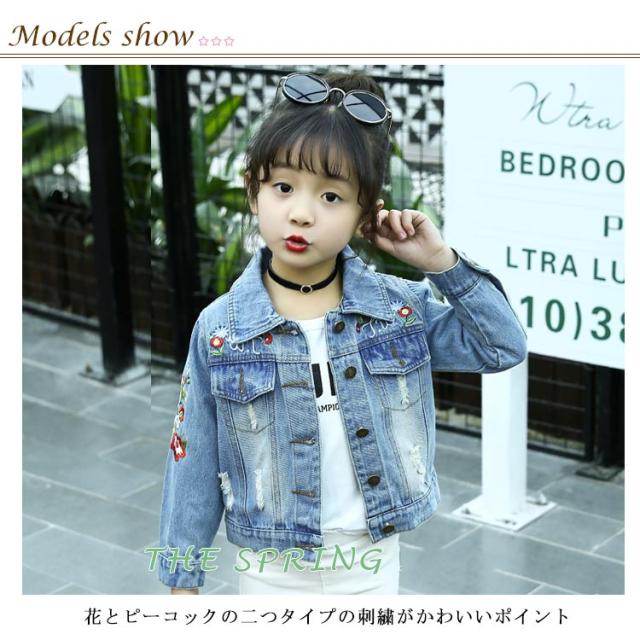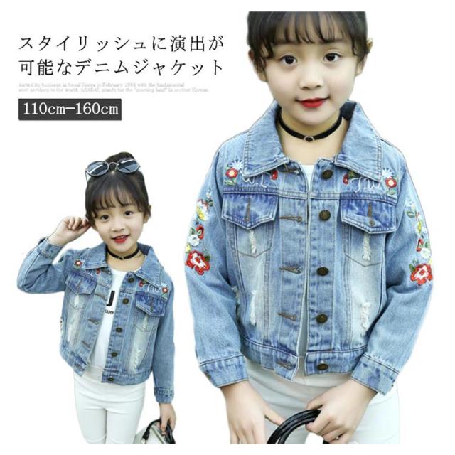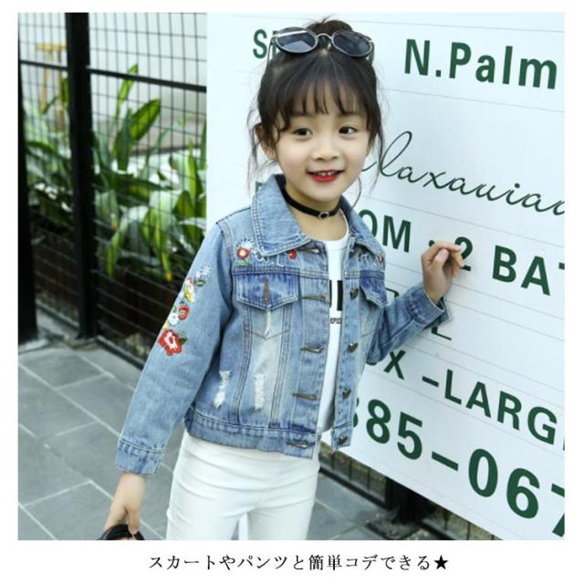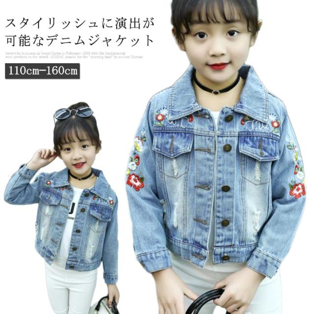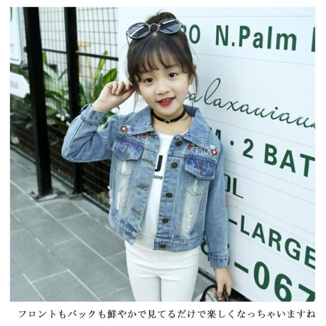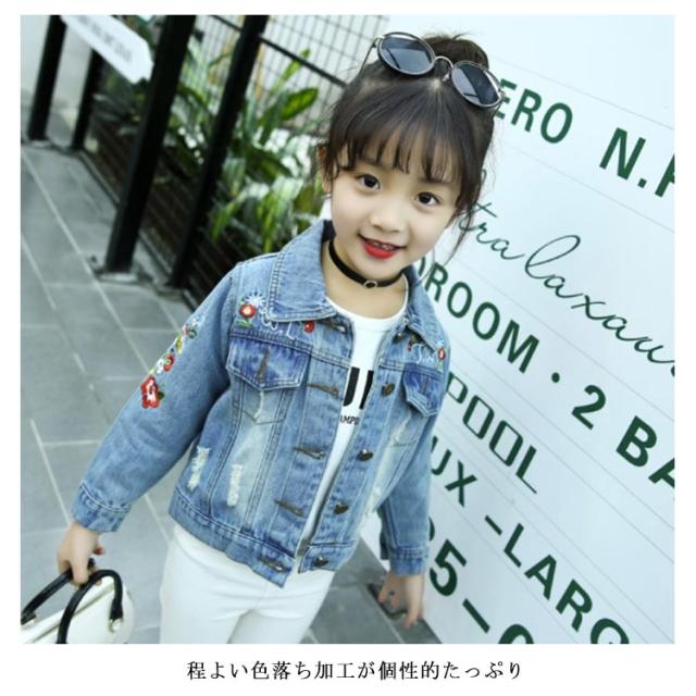 刺繍デニム 子供 女の子 キッズ デニムジャケット デニムアウター 子供服 長袖アウター 色落ち カジュアル 入学式 卒業式 可愛い 人気 おしゃれ 春新作