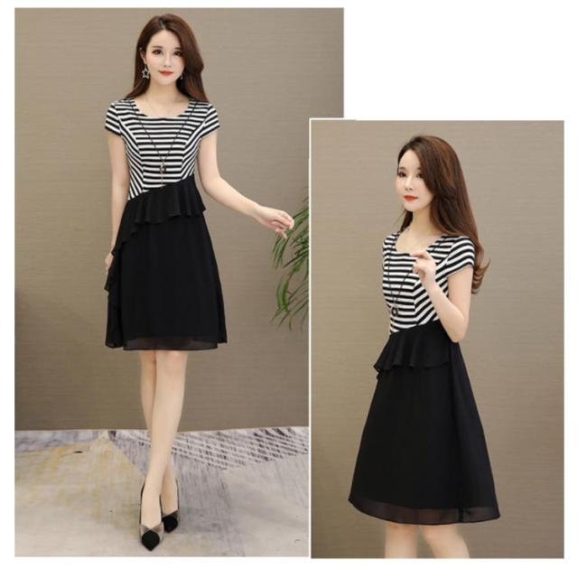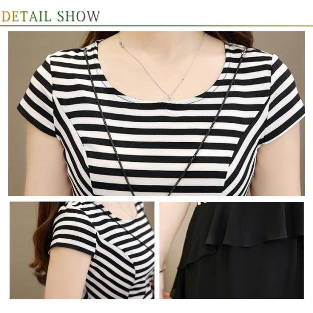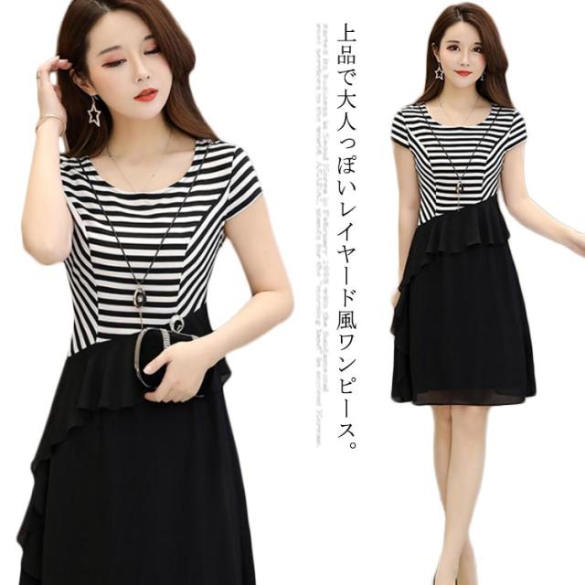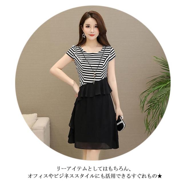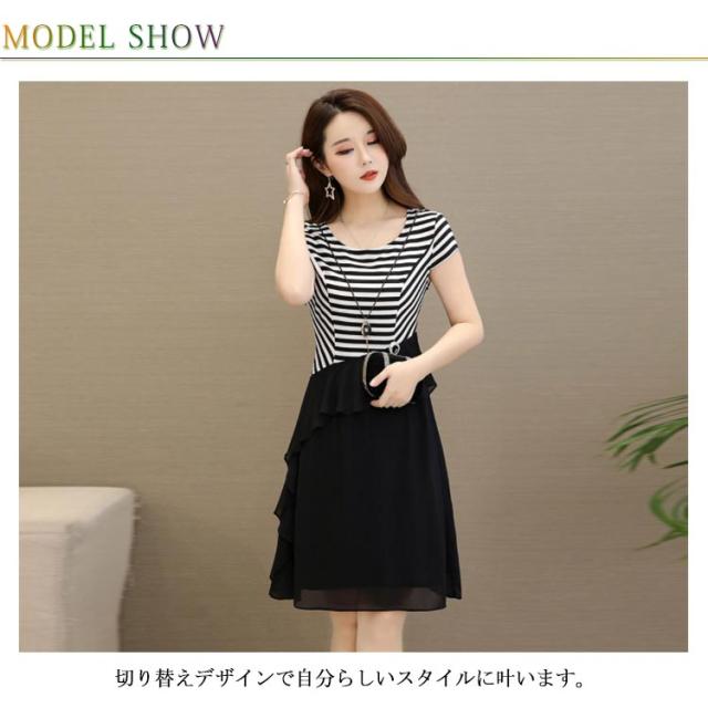 ワンピース レディース 切り替えワンピース 膝丈ワンピース ミディアム丈ワンピース 半袖ワンピース シフォン 半袖 切り替え ドッキング ボーダー柄 カラーブロック 大人可愛い シック 優雅 エレガント キレイめ 大きいサイズ 夏 夏新作