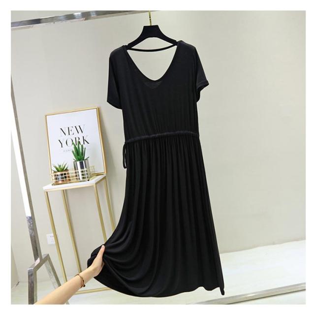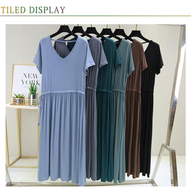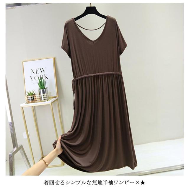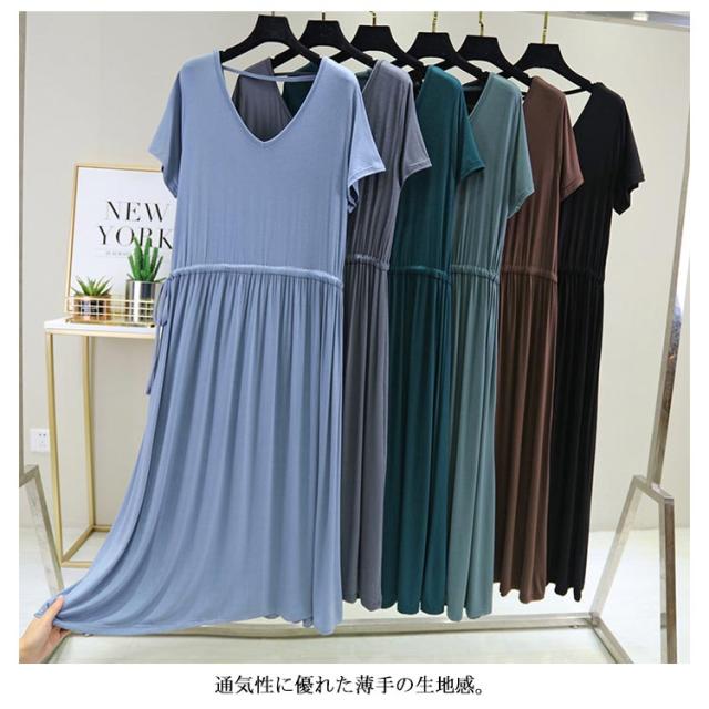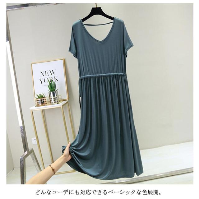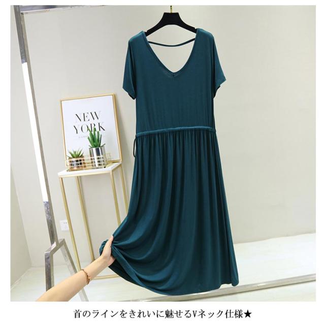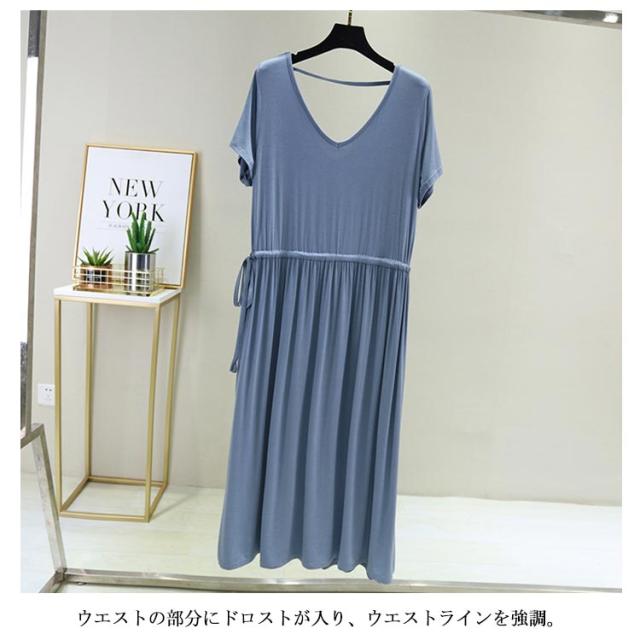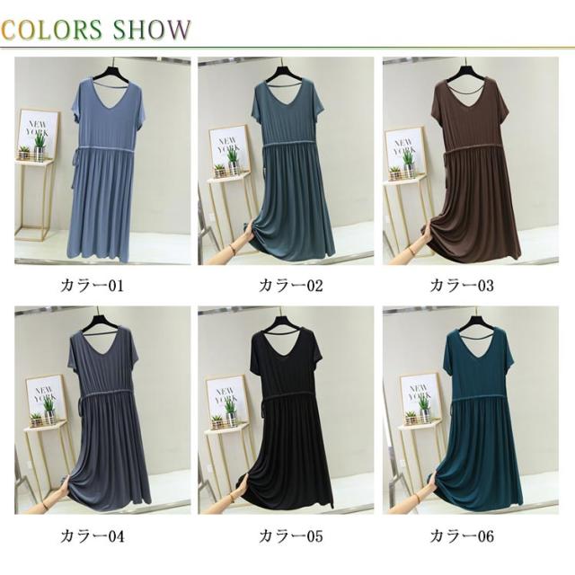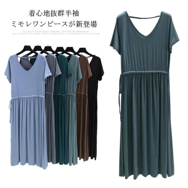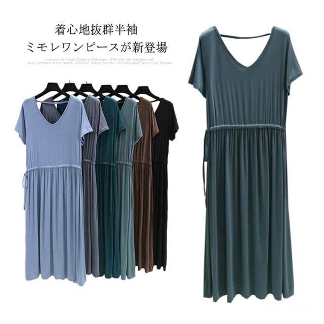 ワンピース レディース 背中空き クロスストラップ ロングワンピース ロング丈 ミモレ丈 ドロスト付き 普段着 Vネック 半袖 大きいサイズ 着痩せ スリム 大人 カジュアル シンプル 着心地よい 体型カバー お洒落 伸縮性 新作