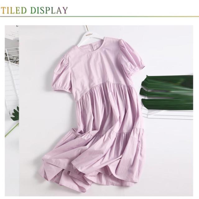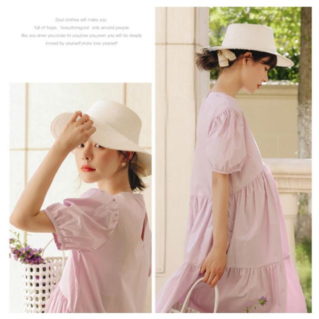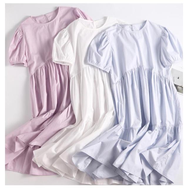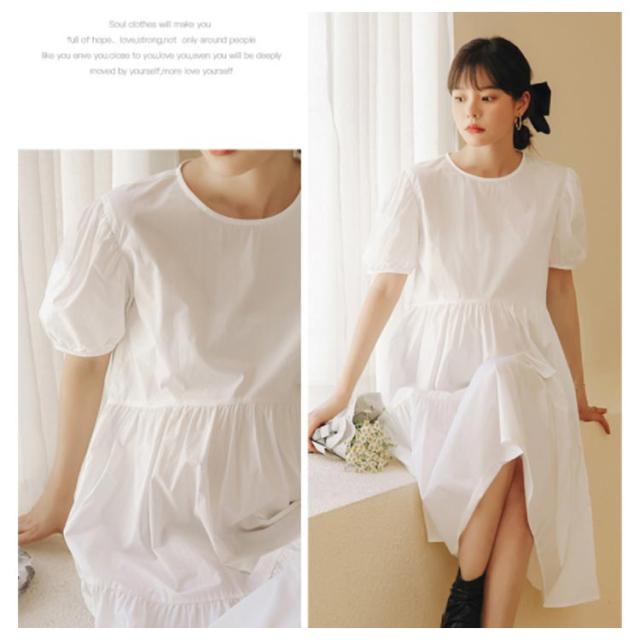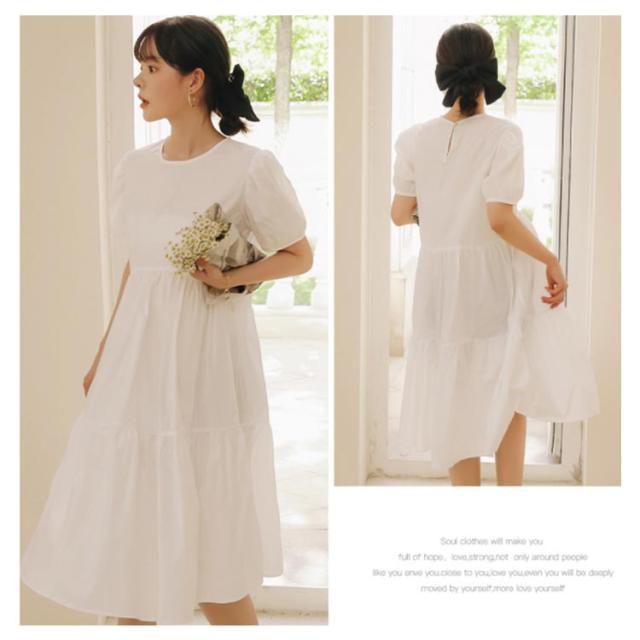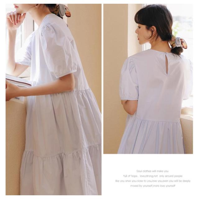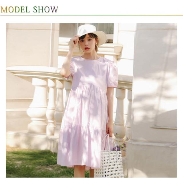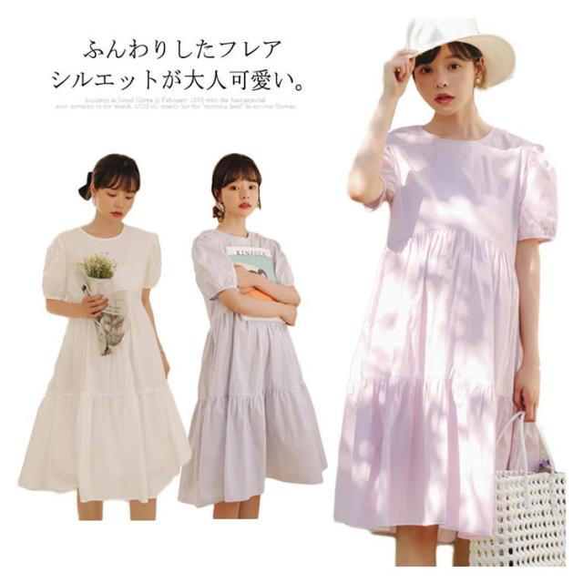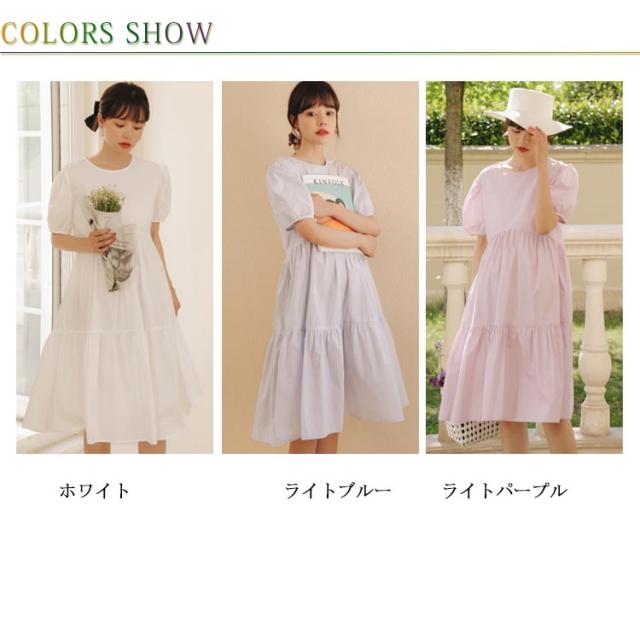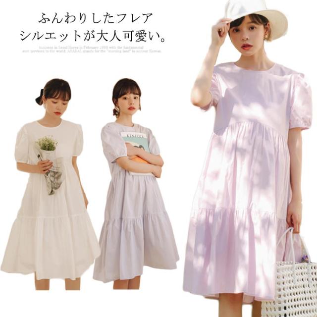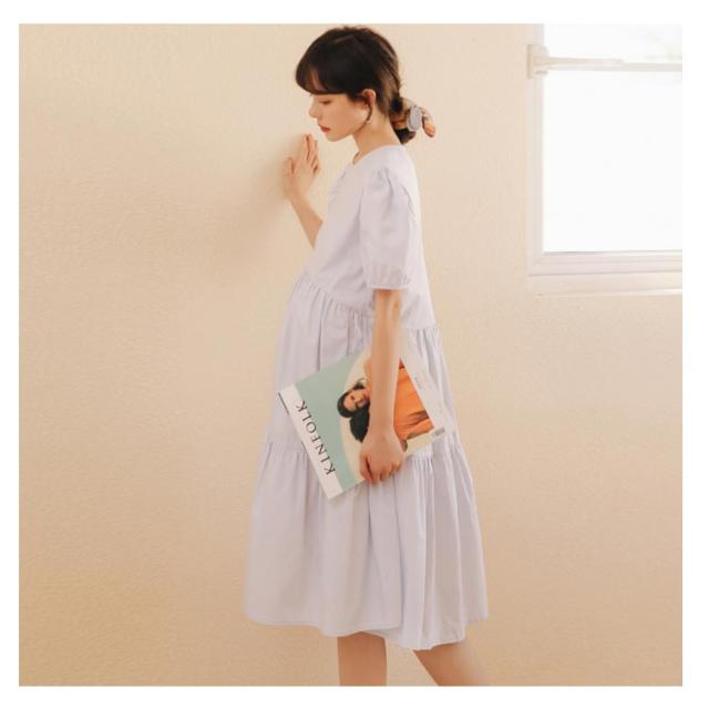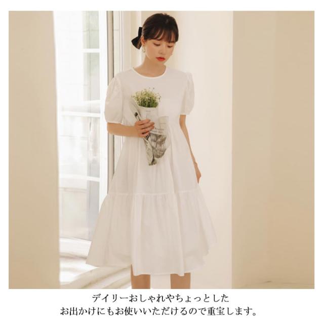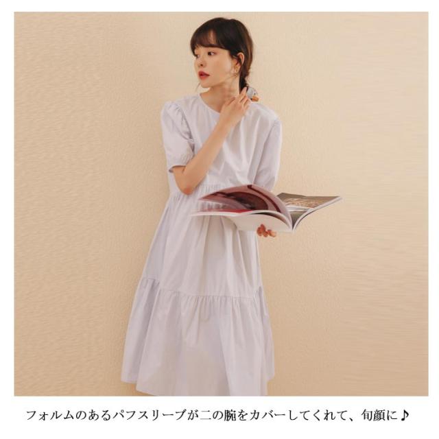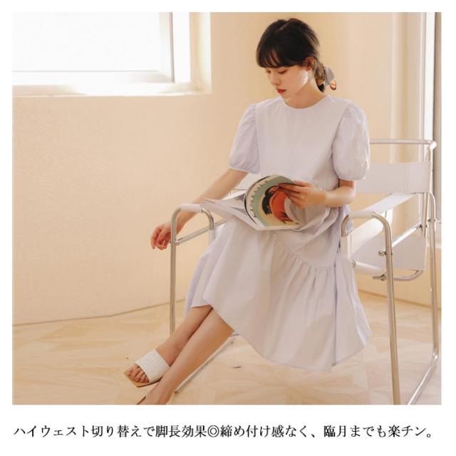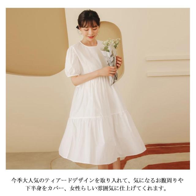 マタニティ ワンピース ティアード 送料無料 パフスリーブ 半袖 綿100% シンプル 可愛い 夏 膝丈 妊婦服 ゆったり ロング マタニティウェア カジュアル