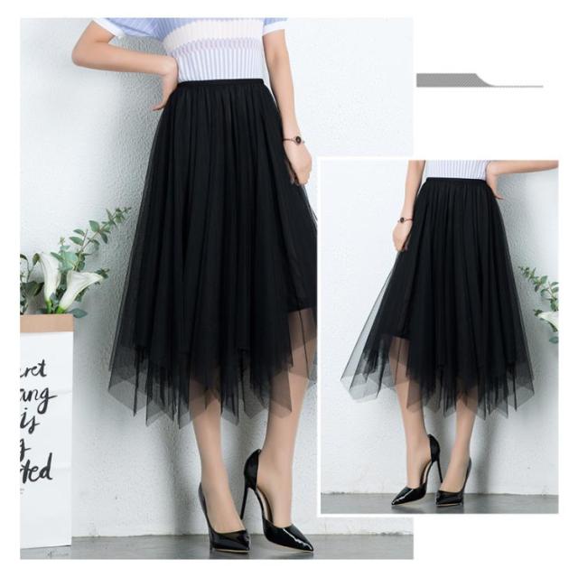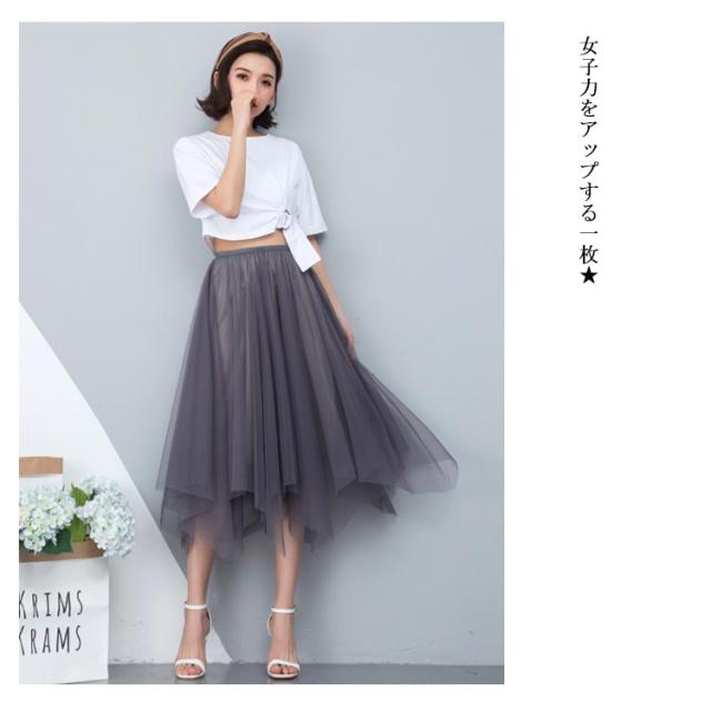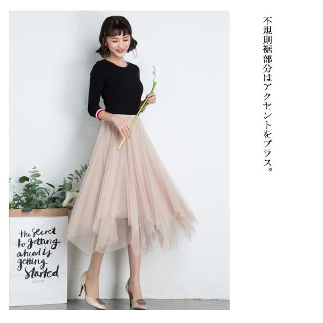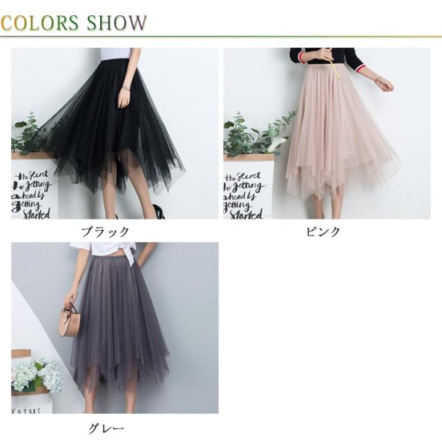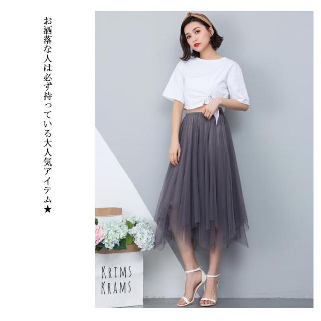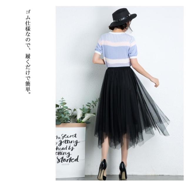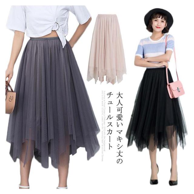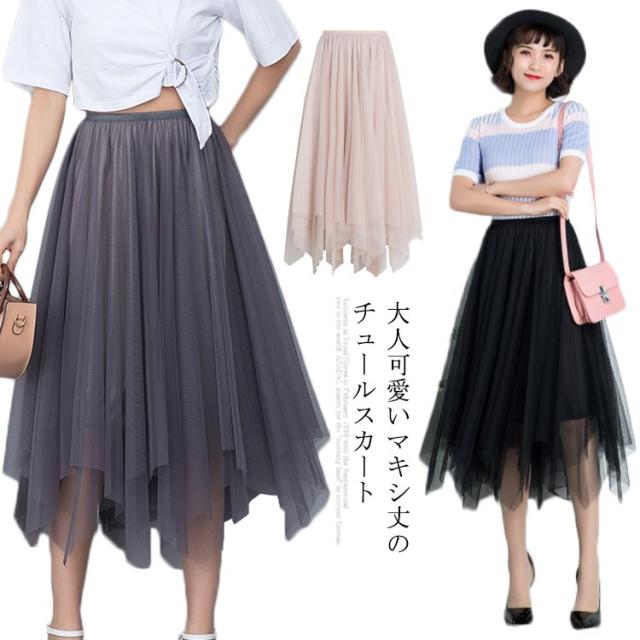 スカート レディース チュールスカート マキシ丈スカート 膝下丈スカート Aラインスカート 無地スカート ボトムス 夏服 夏スカート シースルー 透け ウェストゴム 不規則裾 ロング丈 エレガント かわいい 夏新作