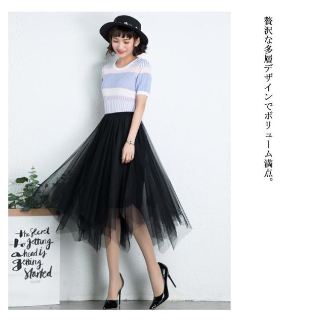 | 大人可愛いマキシ丈のチュールスカート 贅沢な多層デザインでボリューム満点。 ゴム仕様なので、履くだけで簡単。 不規則裾部分はアクセントをプラス。 | |