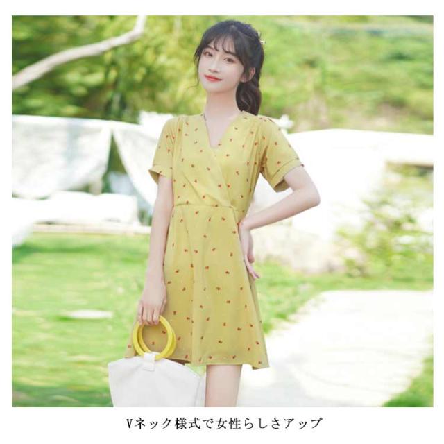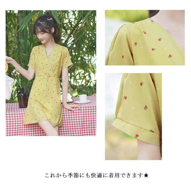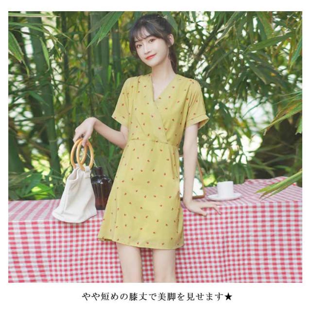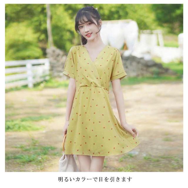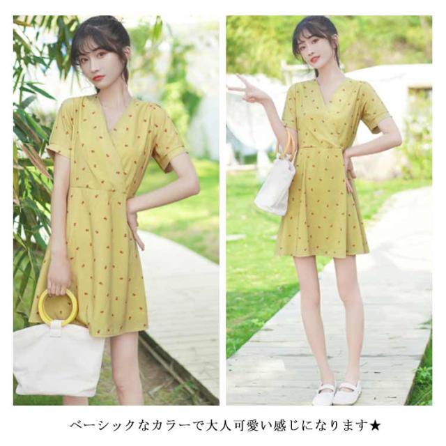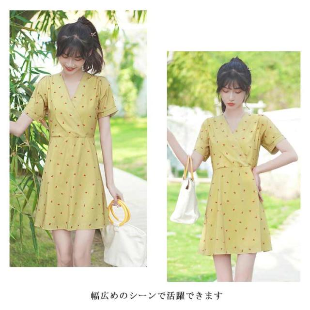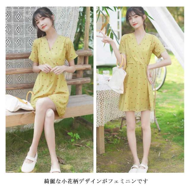 ワンピース レディース 膝丈ワンピース 小花柄ワンピース 半袖ワンピース フレア裾 Vネック フレア裾 カシュクール 清楚 可愛い キュート エレガント 優雅 お洒落 キレイめ 春夏 夏新作