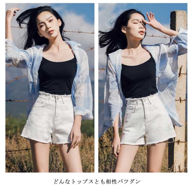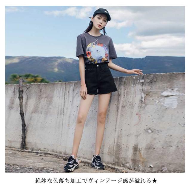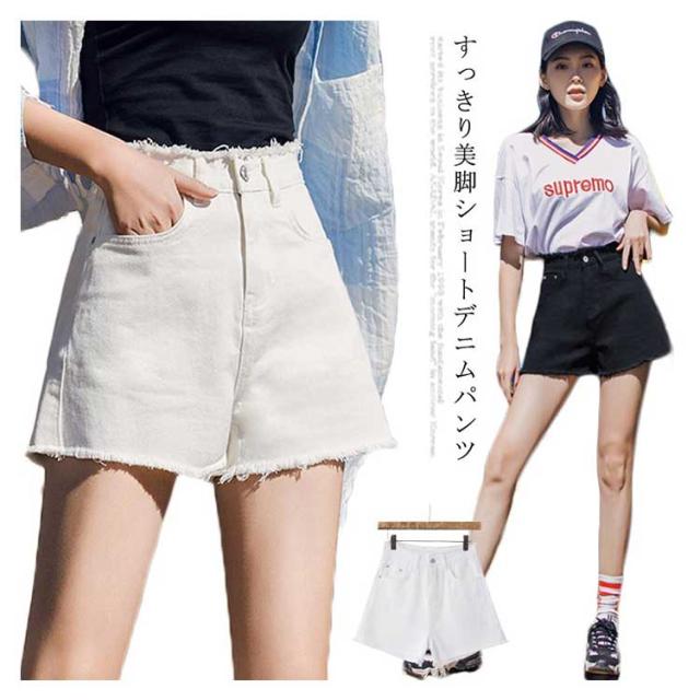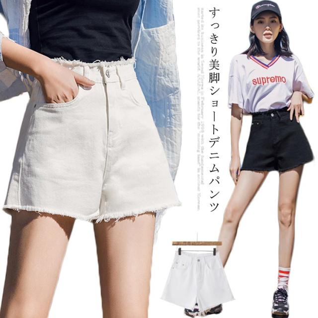 デニム レディース ショートパンツ ショートデニム デニムパンツ ホットパンツ ワイドパンツ ハイウエスト フリンジ裾 カットオフ 切りっぱなし お洒落 カジュアル ラフ ヴィンテージ ボトムス 夏物 夏新作