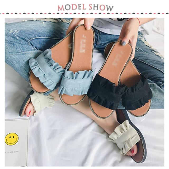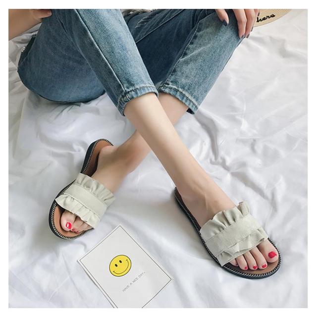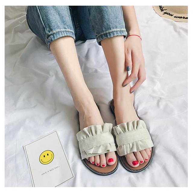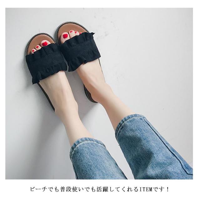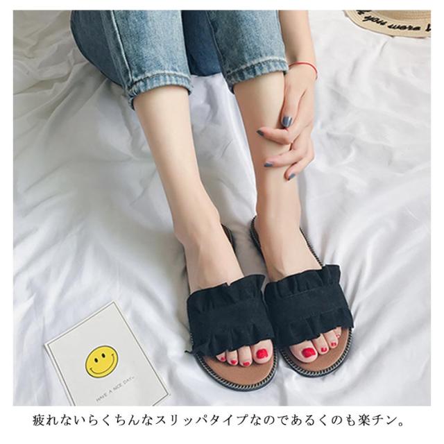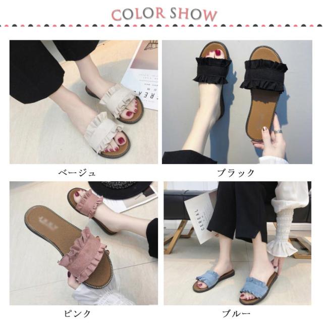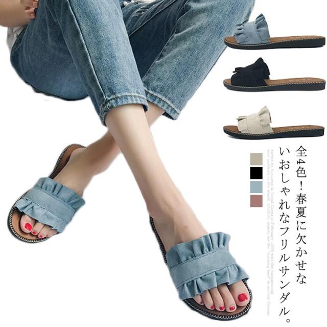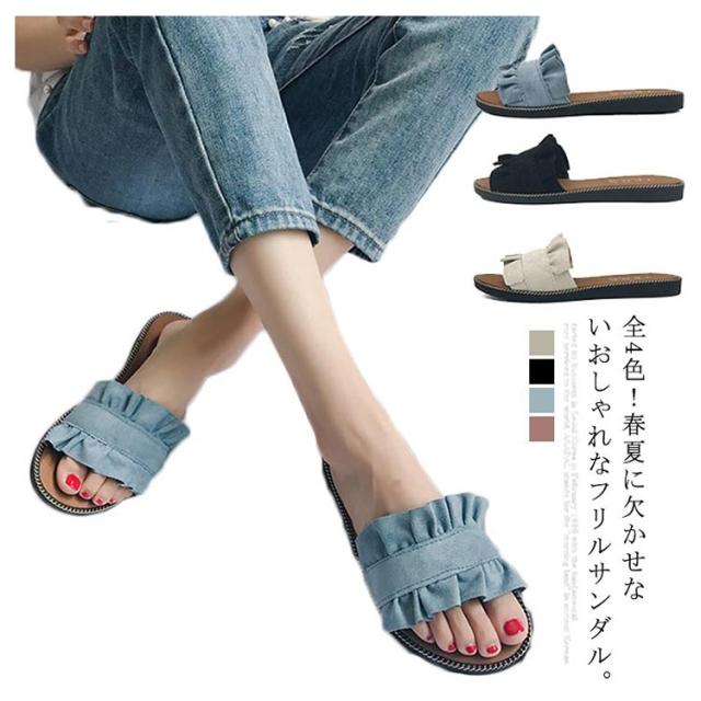 全4色!サンダル フリルサンダル ぺたんこ サンダル 靴 レディース カジュアルサンダル スリッパ ビーチサンダル シューズ リゾート フリル 楽チン 春夏 夏 おしゃれ かわいい