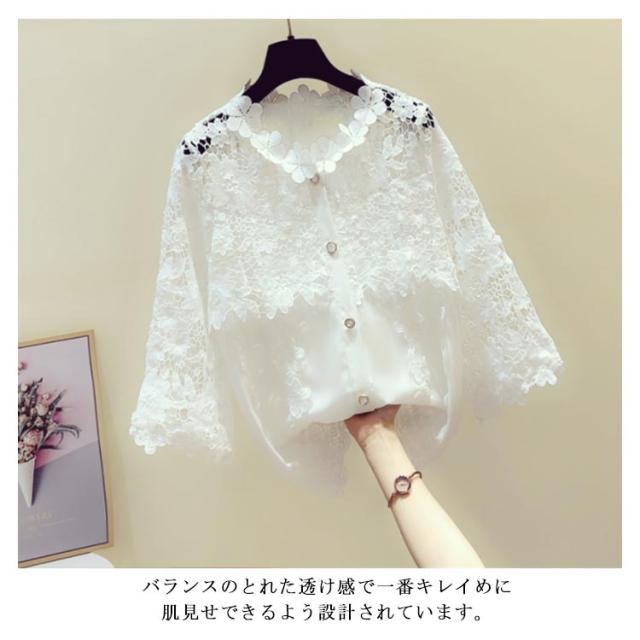 上品に肌見せ フラワーレースブラウス 花柄レース ブラウス トップス シースルーブラウス 透け感 5分丈 7分袖 花柄 夏 おしゃれ キレイめ 上品