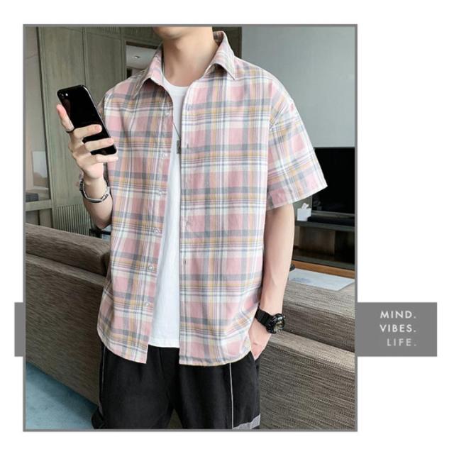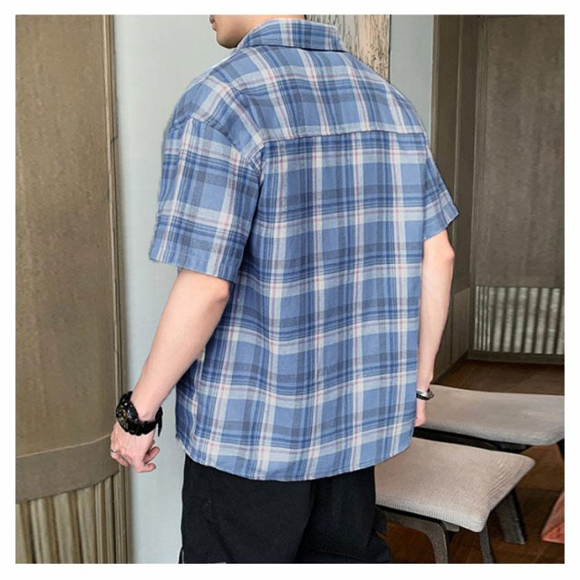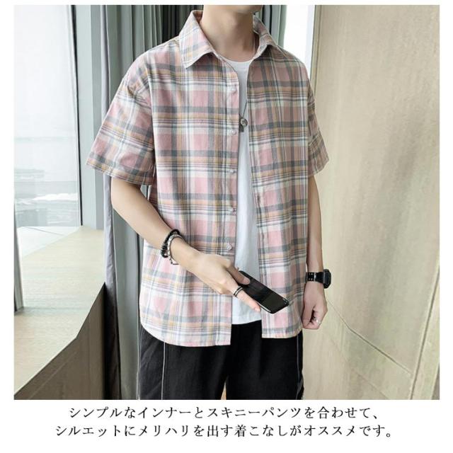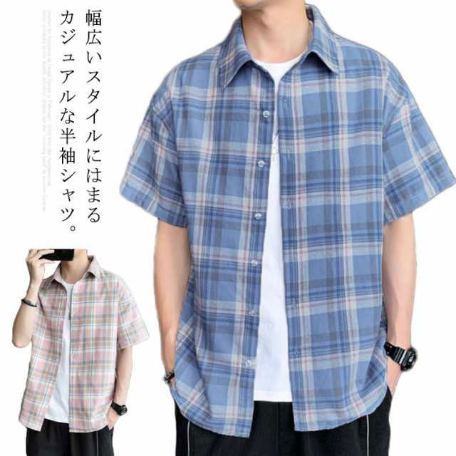 シャツ メンズ カジュアルシャツ チェック柄 トップス 半袖 ゆったり プルオーバー 大きいサイズ お洒落 夏服 薄手 カジュアル