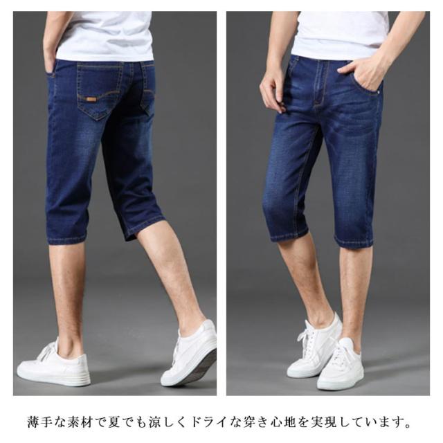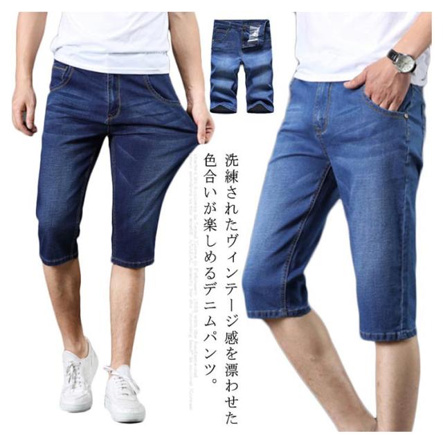 デニムパンツ クロップド メンズ ボトムス 7分丈 ジーパン ストレッチ 短パン 薄手 ジーンズ ストレート ハイウエスト 夏物 カジュアル