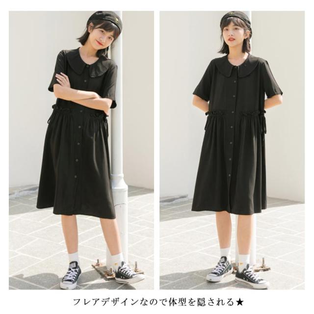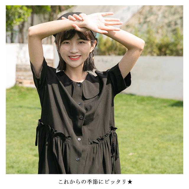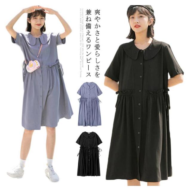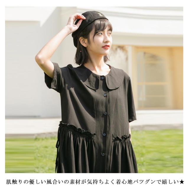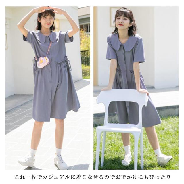 ワンピース レディース 綿麻ワンピース ミモレ丈ワンピース 膝丈ワンピース Aラインワンピース 半袖ワンピース 無地ワンピース リボン付き フレア 森ガール系 シンプル 折り襟 かわいい お洒落 ルーズ ゆったり お出かけ 少女文芸風 学院 夏新作