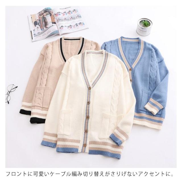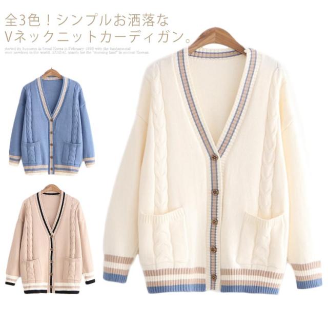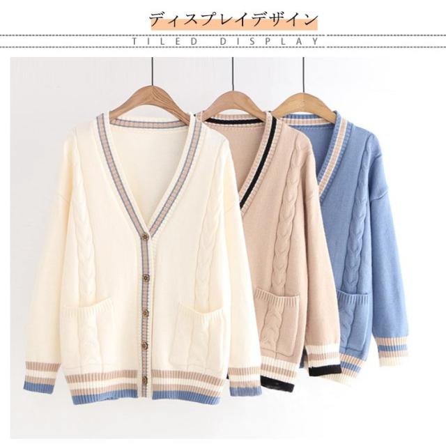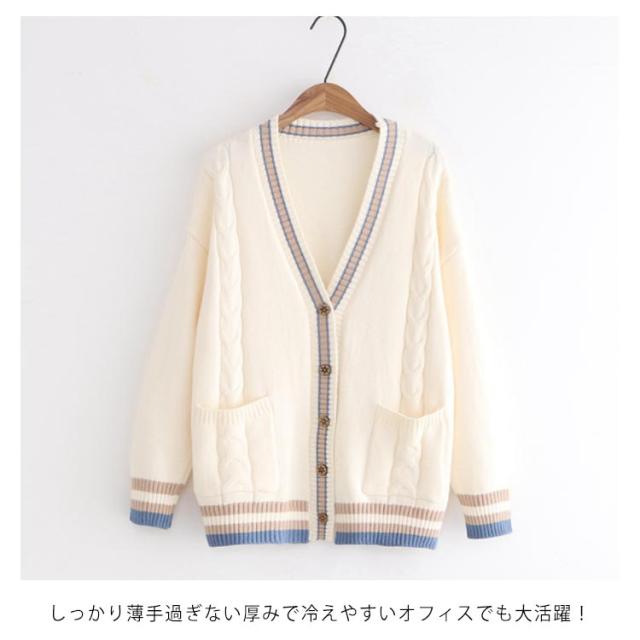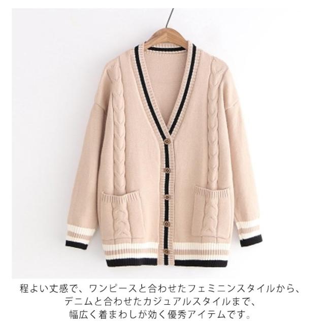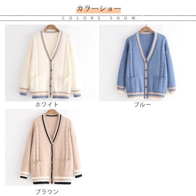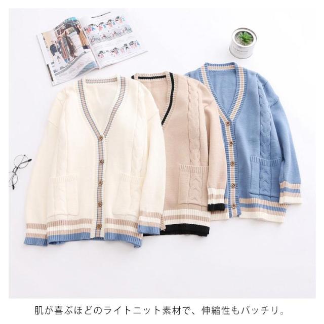 全3色!ニットカーディガン レディース ポケット付き カーディガン 長袖 ニット 羽織り アウター ざっくり ケーブル編み 通勤 通学 秋 冬 大人可愛い