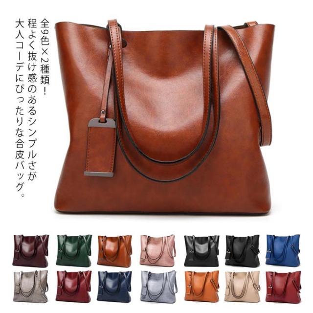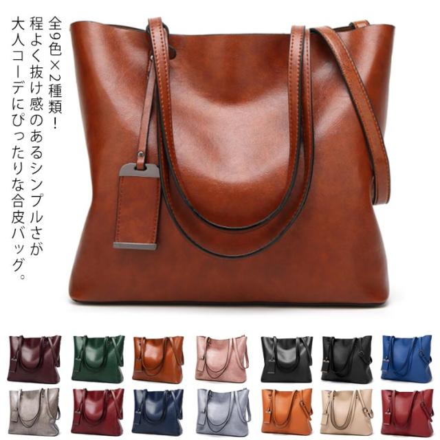 全9色×2種類!ショルダーバッグ レディース 斜め掛け 大人 肩掛けバッグ 斜め掛けバッグ トートバッグ 合皮 大きめ 大容量 スクエア バッグ カバン かばん 鞄 ギフト プレゼント