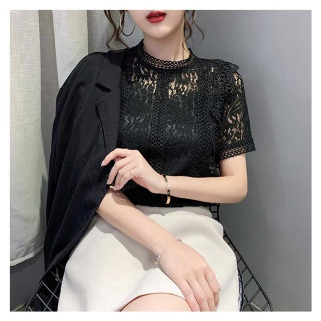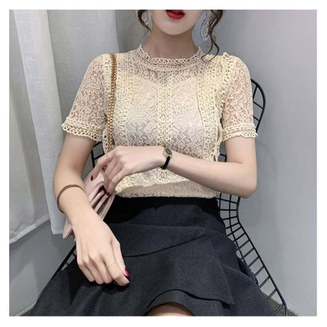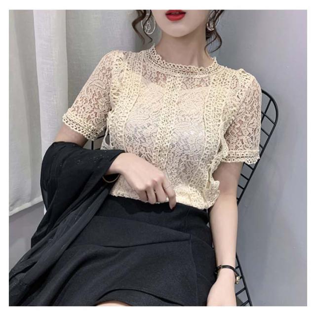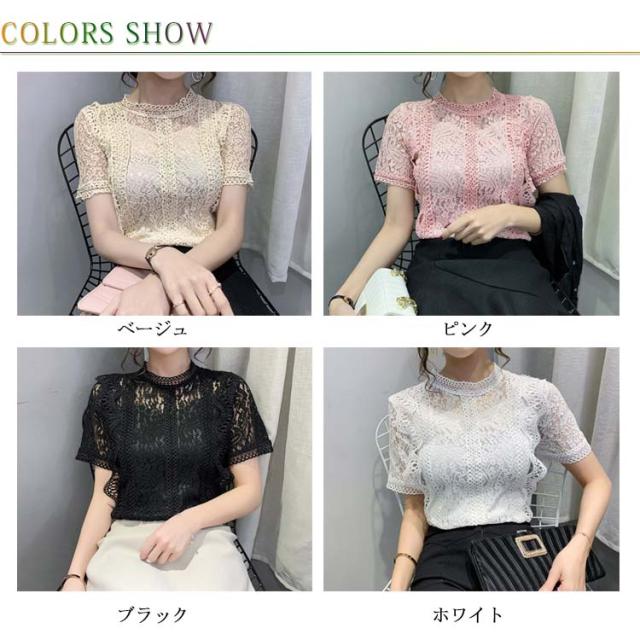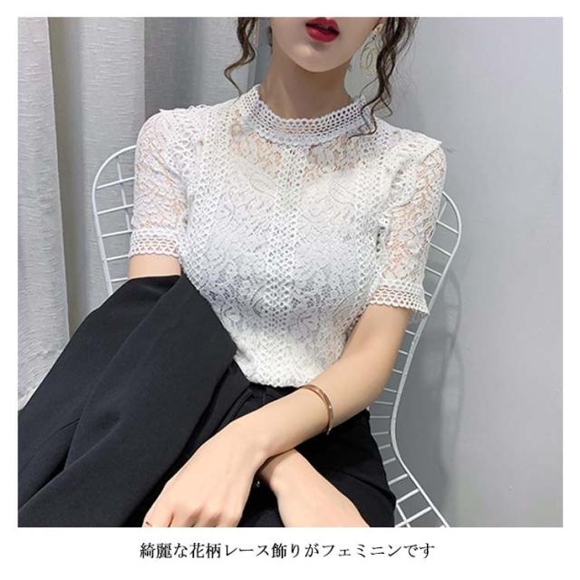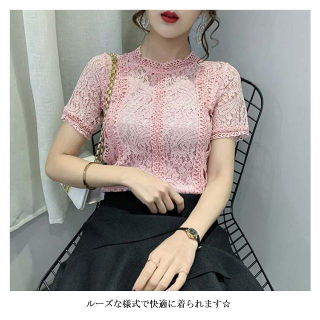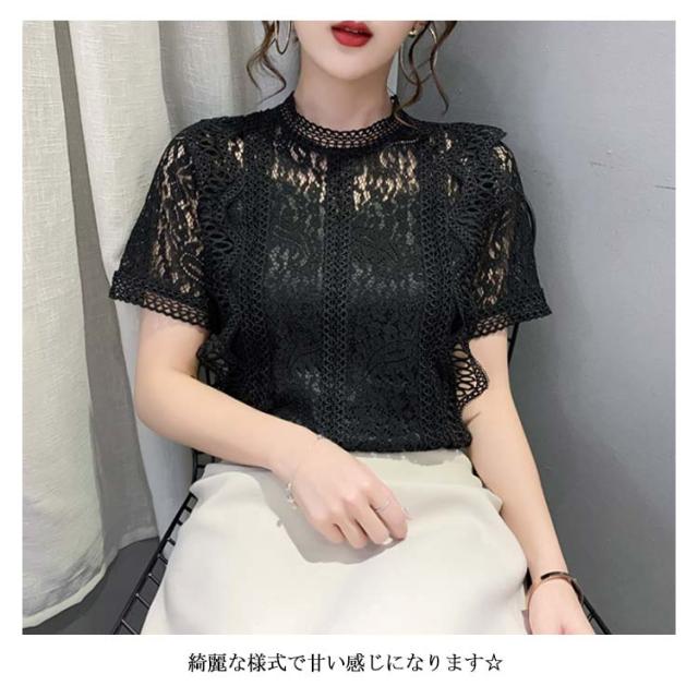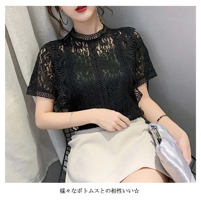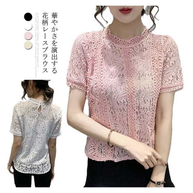 レースブラウス レディース シャツブラウス 半袖 カジュアルブラウス 総レース フリル レースシャツ ハイネック 花柄レース セクシー 優雅 お洒落 上品 エレガント フェミニン カジュアル トップス 夏物 夏新作