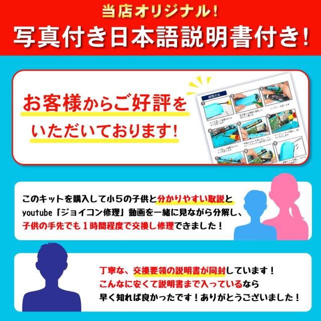 Nintendo Switch Joy-Con ニンテンドー スイッチ コントローラー ジョイスティック 2個セット 修理 交換 部品 パーツ キット 任天堂 ジョイコン 動かない 勝手に動く 効かない 反応しない 故障 簡単 自己修理 おすすめ 安心 保証付き リノウル