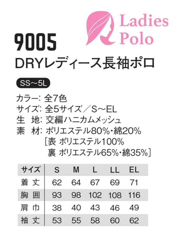 作業服 KOKURAYA 小倉屋 DRYレディース長袖ポロ 通年 ポロシャツ 9005 レディース ワークウェア