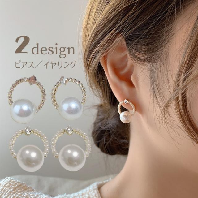 ピアス イヤリング スタッドピアス クリップ式 両耳用 アクセサリー レディース 女性 婦人 サークル パール調 ラインストーン