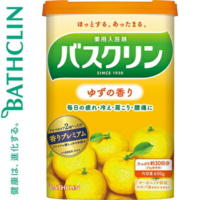 バスクリン ゆずの香り 600g *医薬部外品 バスクリン/温浴効果を高め、血行を促進/疲労回復/肩こり/腰痛/あせも/しっしん/にきび/荒れ性/ひび/しもやけ/あかぎれ/うちみ/くじき/神経痛/リウマチ/痔/冷え症/肌当たりまろやか