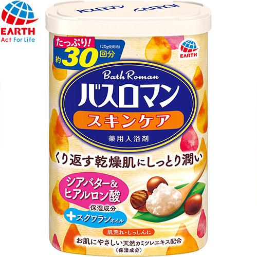 バスロマン スキンケア シアバター&ヒアルロン酸 600g *医薬部外品 アース製薬/有効成分が温浴効果を高め血行を促進/疲労回復・冷え症・荒れ性に効果的/Wモイスト成分/ヒアルロン酸が角質層へ浸透/お肌の水分バランスを保ち/シアバターが潤い感あふれる肌に