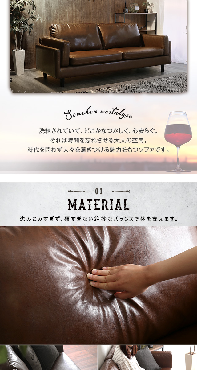 懐かしさを醸す 3人掛け ヴィンテージソファ 送料無料 レトロソファー おしゃれ レザーソファー 脚付き 肘付き 3P おすすめ 合皮 3人掛けソファー カウチソファー おすすめ 激安 安い