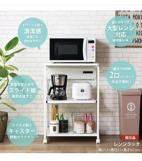 【キーワード】 大型レンジ対応 キッチンラック レンジ台 レンジラック おしゃれ 安い ホワイト 白 キャスター付き 幅60 奥行45 ロータイプ 3段 オーブンレンジ キッチンワゴン 炊飯器 収納 スリム 引き出し ヘルシオ スチームオーブンレンジ 激安 おすすめ 丈夫 アイアン スチール 人気ランキング