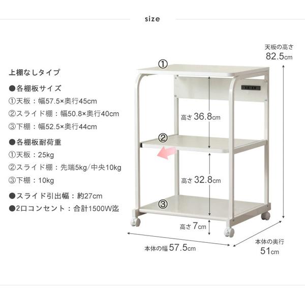 耐荷重:天板約25kg/スライド棚先端部約5kg、中央部10kg/下棚棚10kg