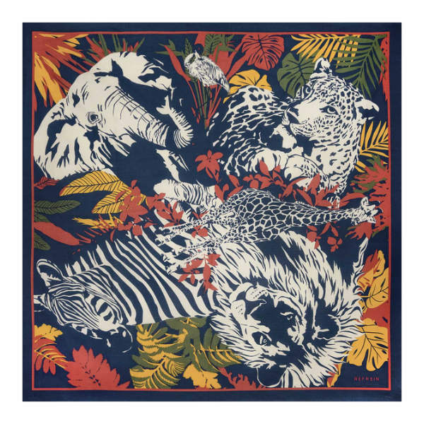 命あふれる雄大なサバンナをイメージしたデザインです。四方に配された動物たちが結び方によっていろんな表情を魅せてくれます。