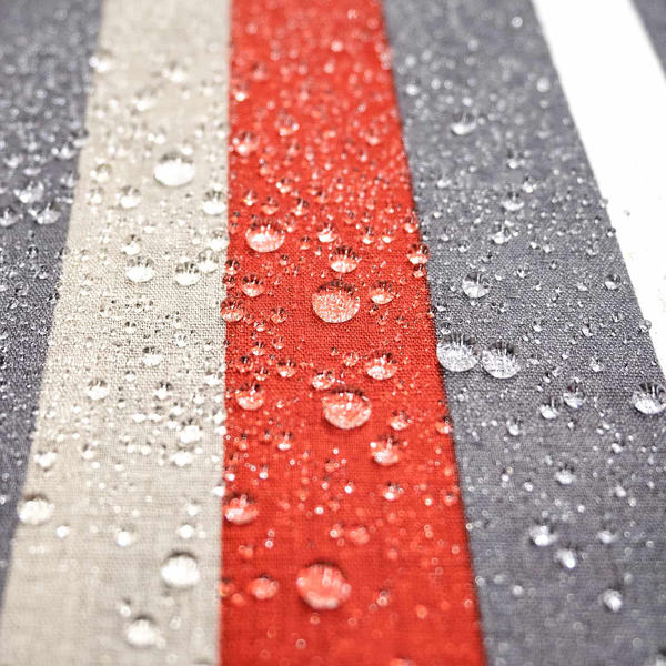 ちょっとした汚れがついても濡れタオル等でサッと拭き取ることができる撥水効果付きです。撥水効果は洗濯回数を重ねると徐々に弱くなりますが、洗濯・乾燥後にアイロン(130〜150度)をかけると、撥水の効果が長持ちする傾向にあります。