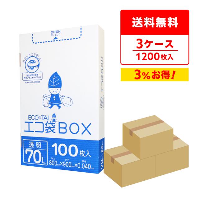 ポリ袋 ゴミ袋 箱タイプ 70リットル 透明 80x90cm 0.040mm厚 100枚x4小箱x3箱 HK-730-3 ごみ袋 70l BOXタイプ 箱型 収納 クリア サンキョウプラテック 送料無料