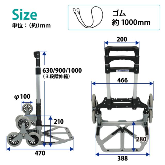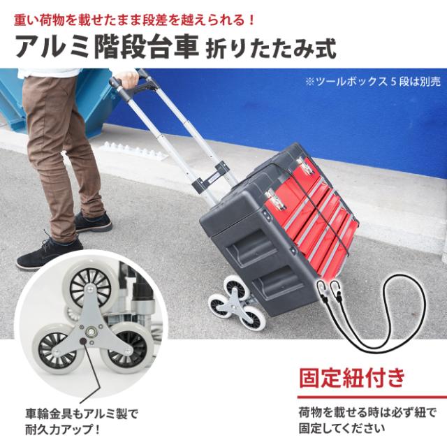キャリーカート 折りたたみ アルミ 3輪 階段 台車 高耐久 ノーパンクタイヤ ゴムバンド付 昇降台車 アウトドア レジャー 軽量 静音 運搬 コンパクト KIKAIYA