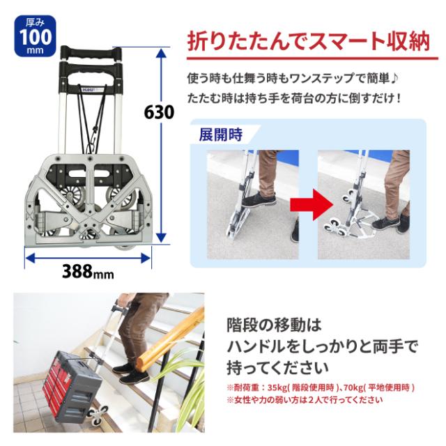 | 耐荷重 | 階段使用時:35kg、平地使用時:70kg |