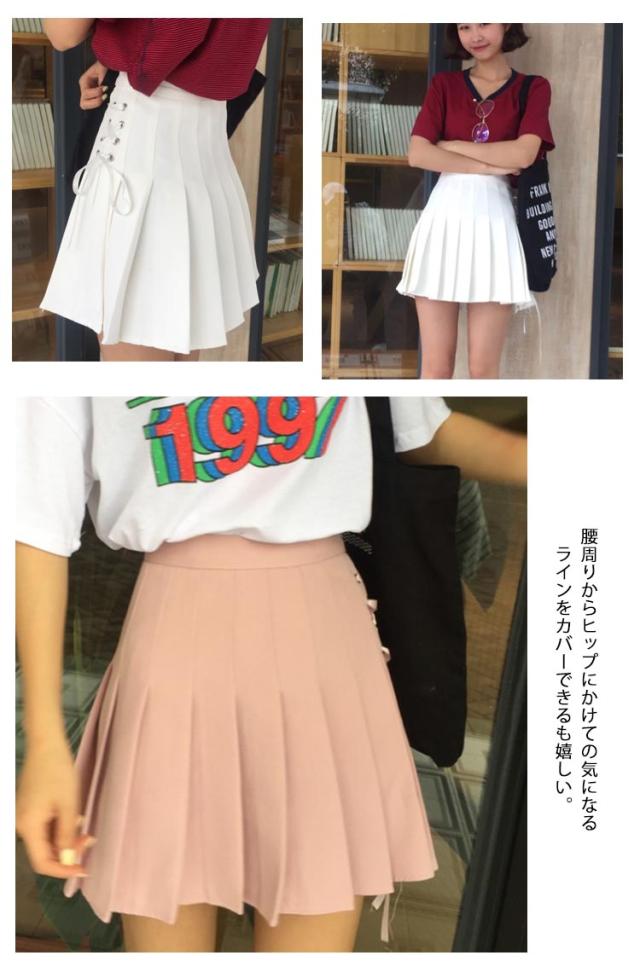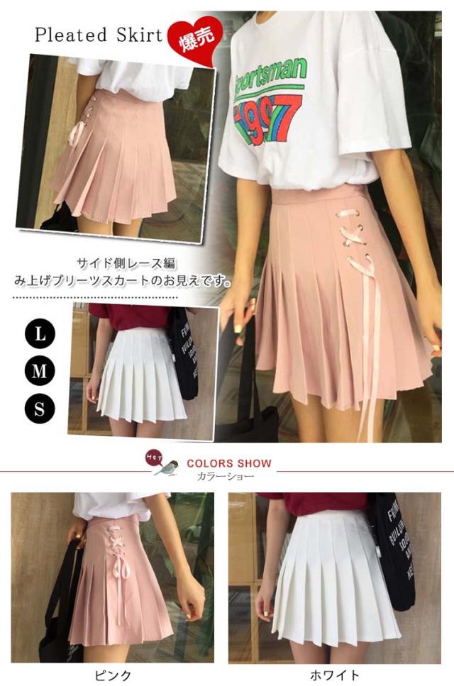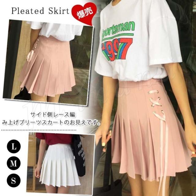 サイド側レース編み上げが新鮮。テニススカート プリーツスカート ミニスカート スカート ミニ丈 プリーツ スカート レディース 運動応援 学園祭 学生 可愛い 春 夏