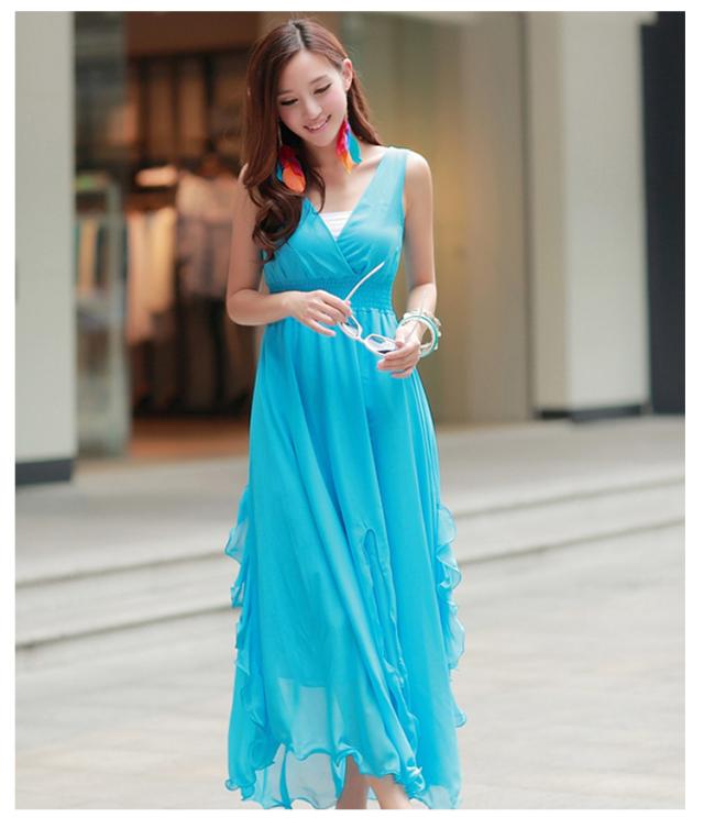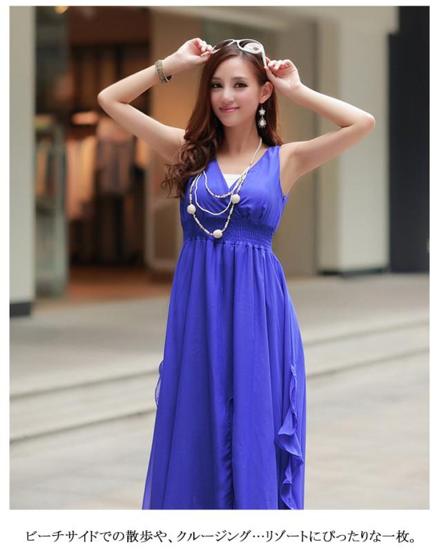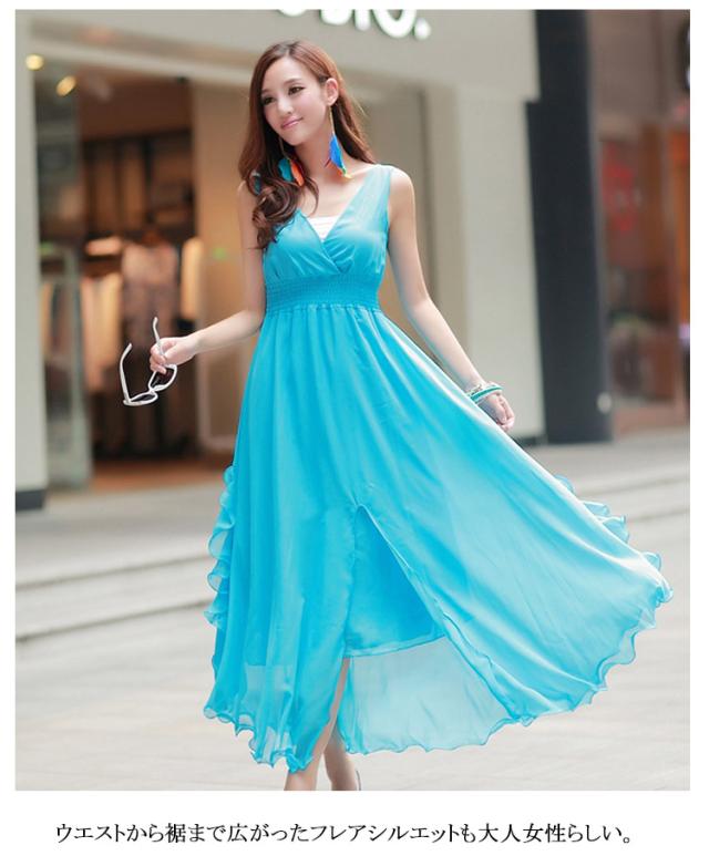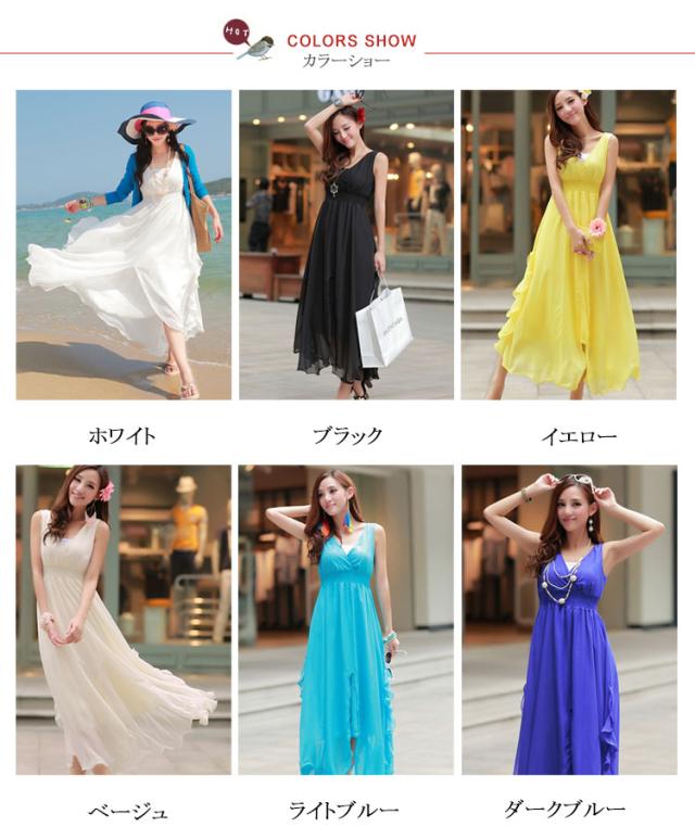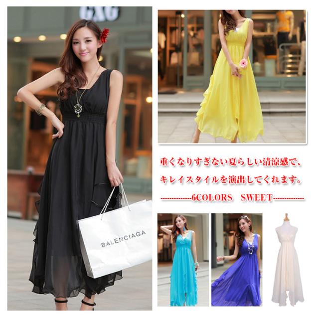 全6color マキシワンピ シフォン リゾートワンピース マキシ丈 ビーチ ロングワンピース マキシワンピース ロングドレス 大きいサイズ リゾートワンピース マキシ丈 フレア ノースリーブ 夏 無地 Vネック