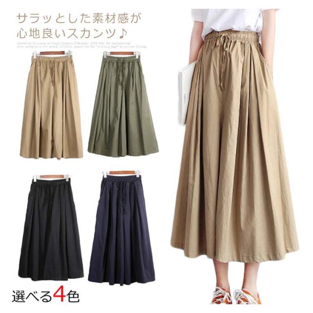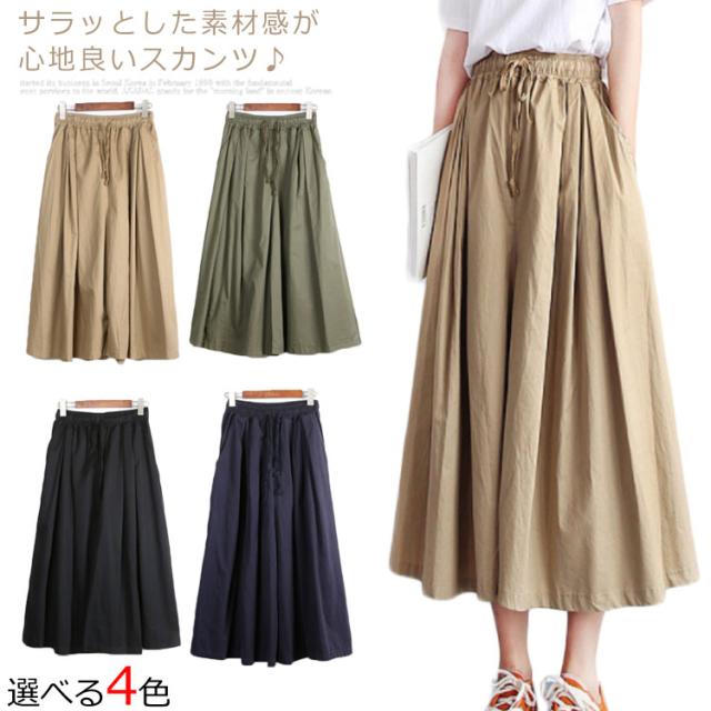 [4色展開]スカンツ スカーチョ ガウチョ レディース ワイドパンツ ウエストリボン ウエストゴム フレア ガウチョ ハイウェスト ボトムス 膝下 春夏 女子
