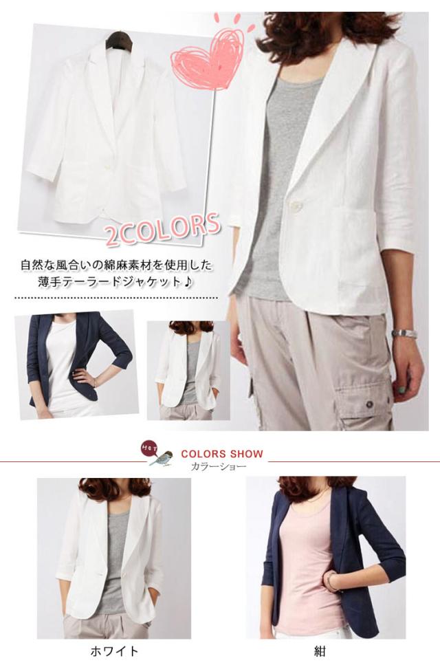 リネンジャケット 7分袖テーラードジャケット テーラードジャケット 綿麻 リネン テーラード ジャケット 7分袖 サマージャケット 上着 アウター 無地 夏 レディース