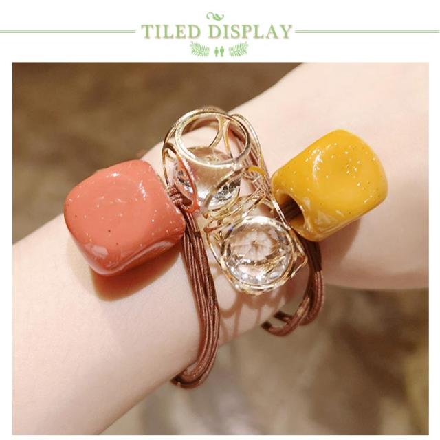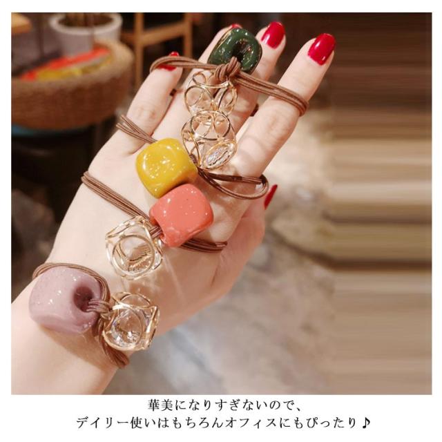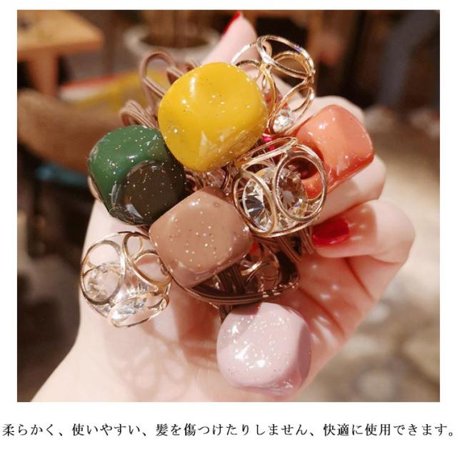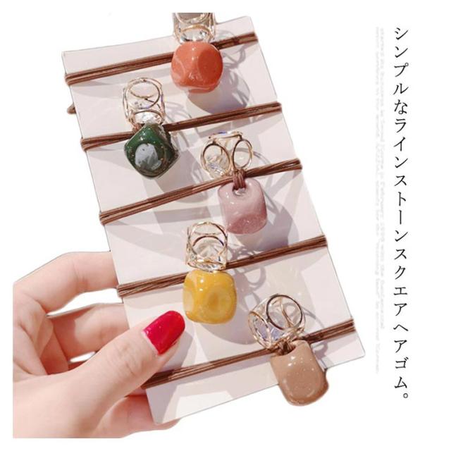 送料無料 ヘアゴム ヘアアクセサリー リングゴム スクエア 丸形 ラインストーン チャーム カラーゴム まとめ髪 ヘアアレンジ 髪留め 髪飾り 結婚式 お呼ばれ シンプル カジュアル オフィス