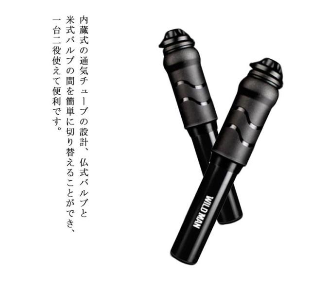自転車 空気入れ ミニエアポンプ 米式 仏式 バルブ対応 2種バルブコネクタ付 携帯ポンプ 軽量 小型 収納便利 アタッチメント付属 マウンテンバイク ロードバイク適用