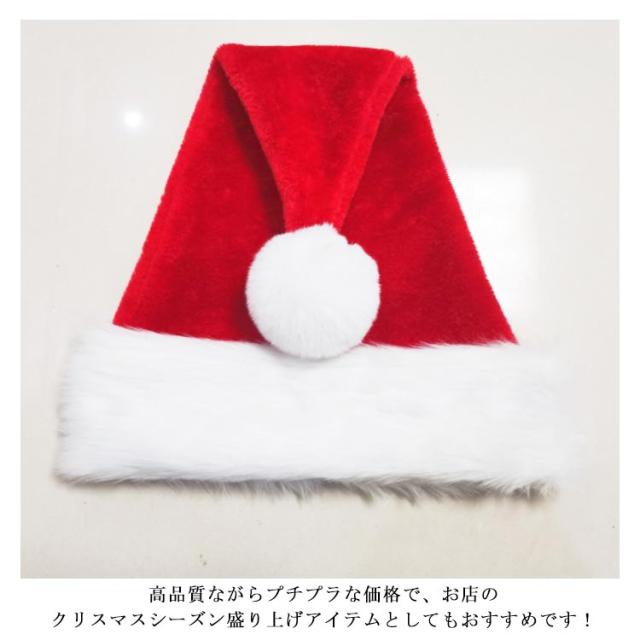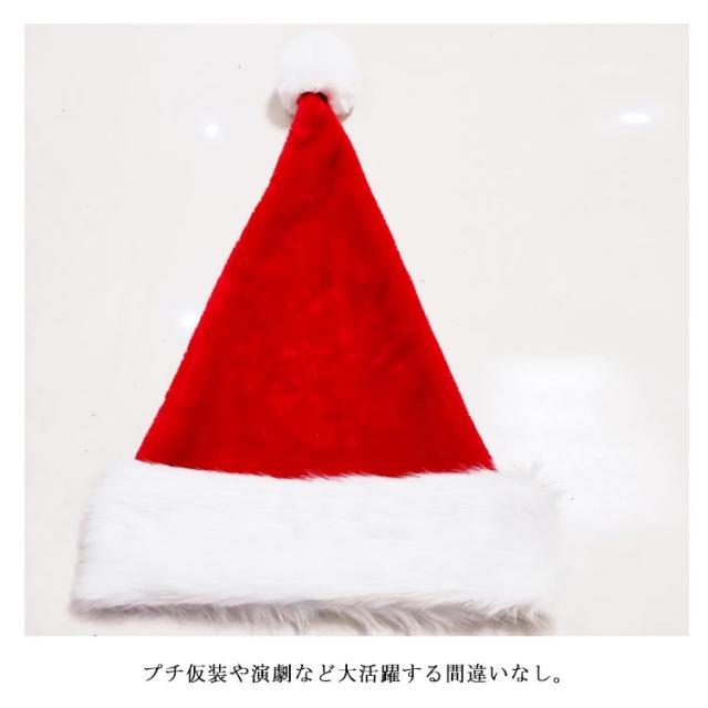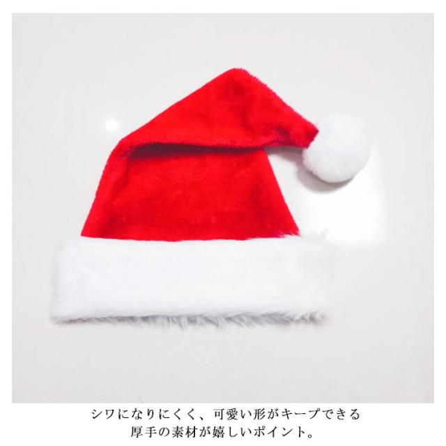 | かぶるだけでクリスマス気分が盛り上がるサンタ帽。 クリスマスの定番中の定番アイテム。 シワになりにくく、可愛い形がキープできる厚手の素材が嬉しいポイント。 男女問わず誰でも合わせやすい定番のサンタ帽子。 プチ仮装や演劇など大活躍する間違いなし。 高品質ながらプチプラな価格で、お店のクリスマスシーズン盛り上げアイテムとしてもおすすめです! | |
